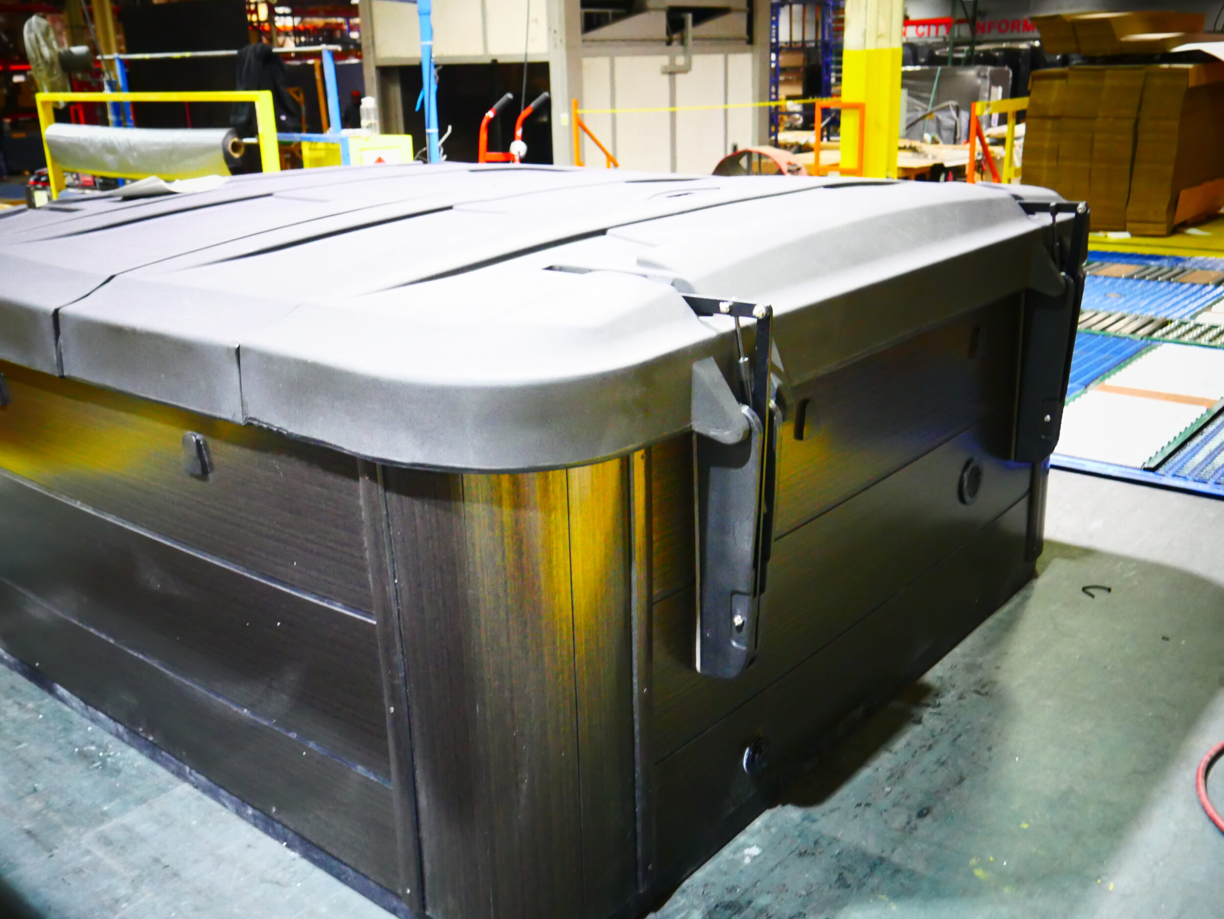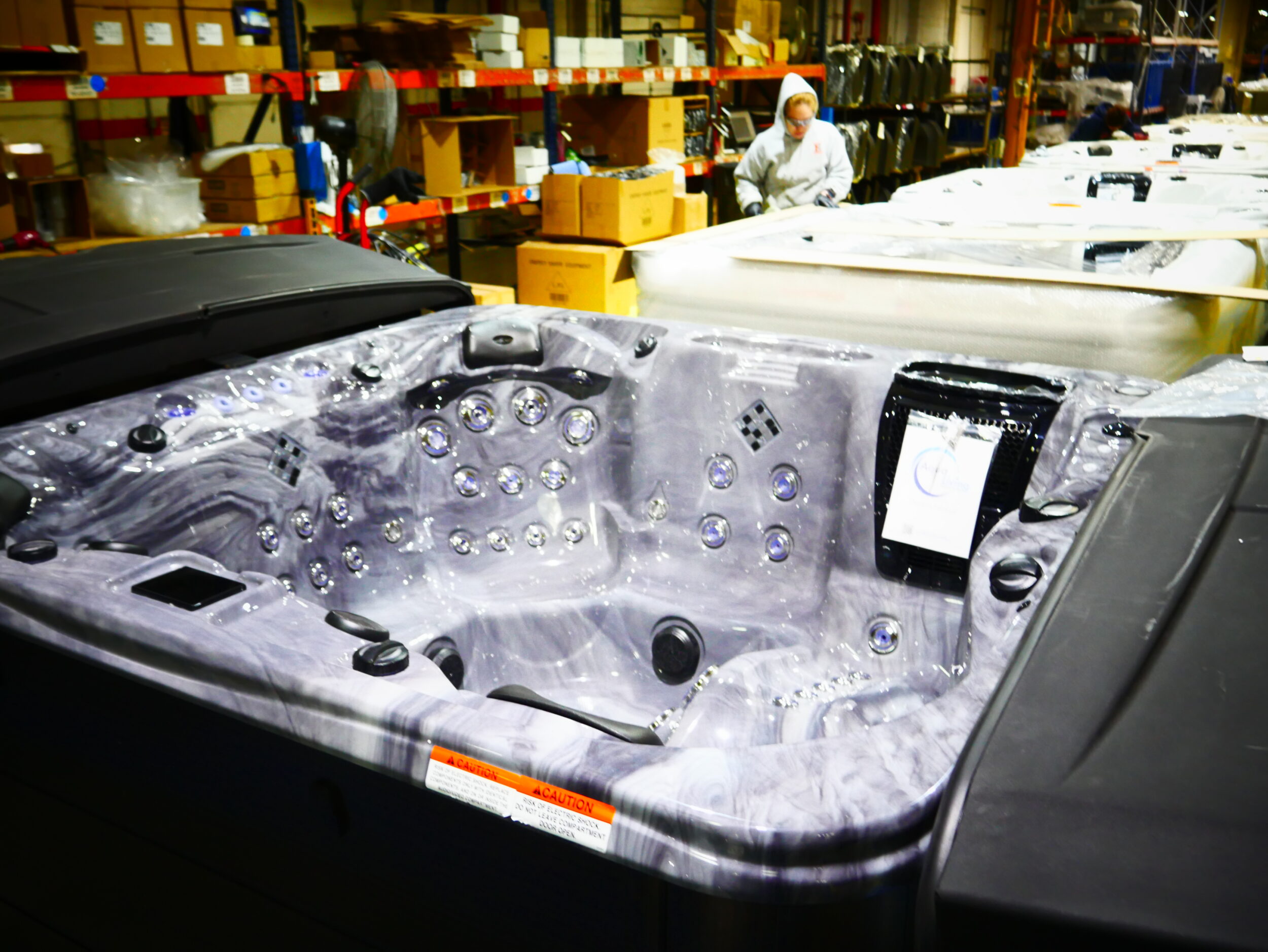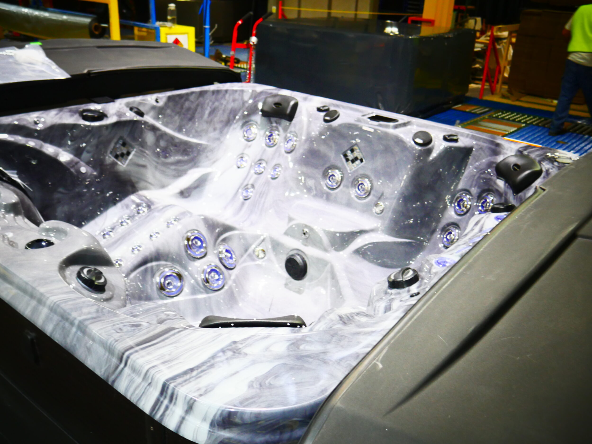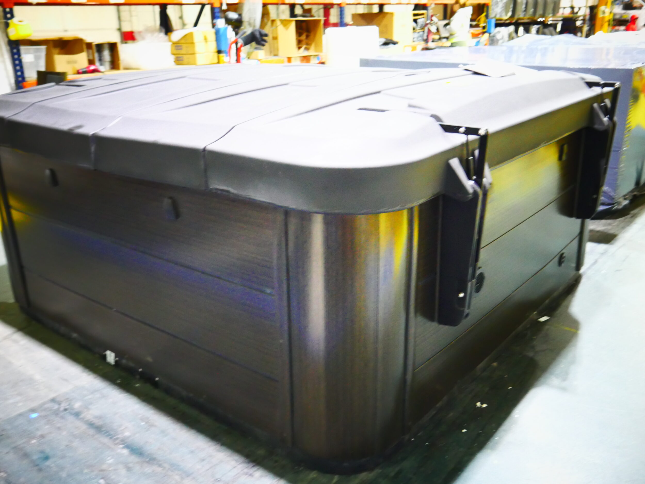 This luxurious spa designed for six people, features a stunning tuff top, storm cloud acrylic, expresso cabinets and is upgraded with our freshwater mist system.
