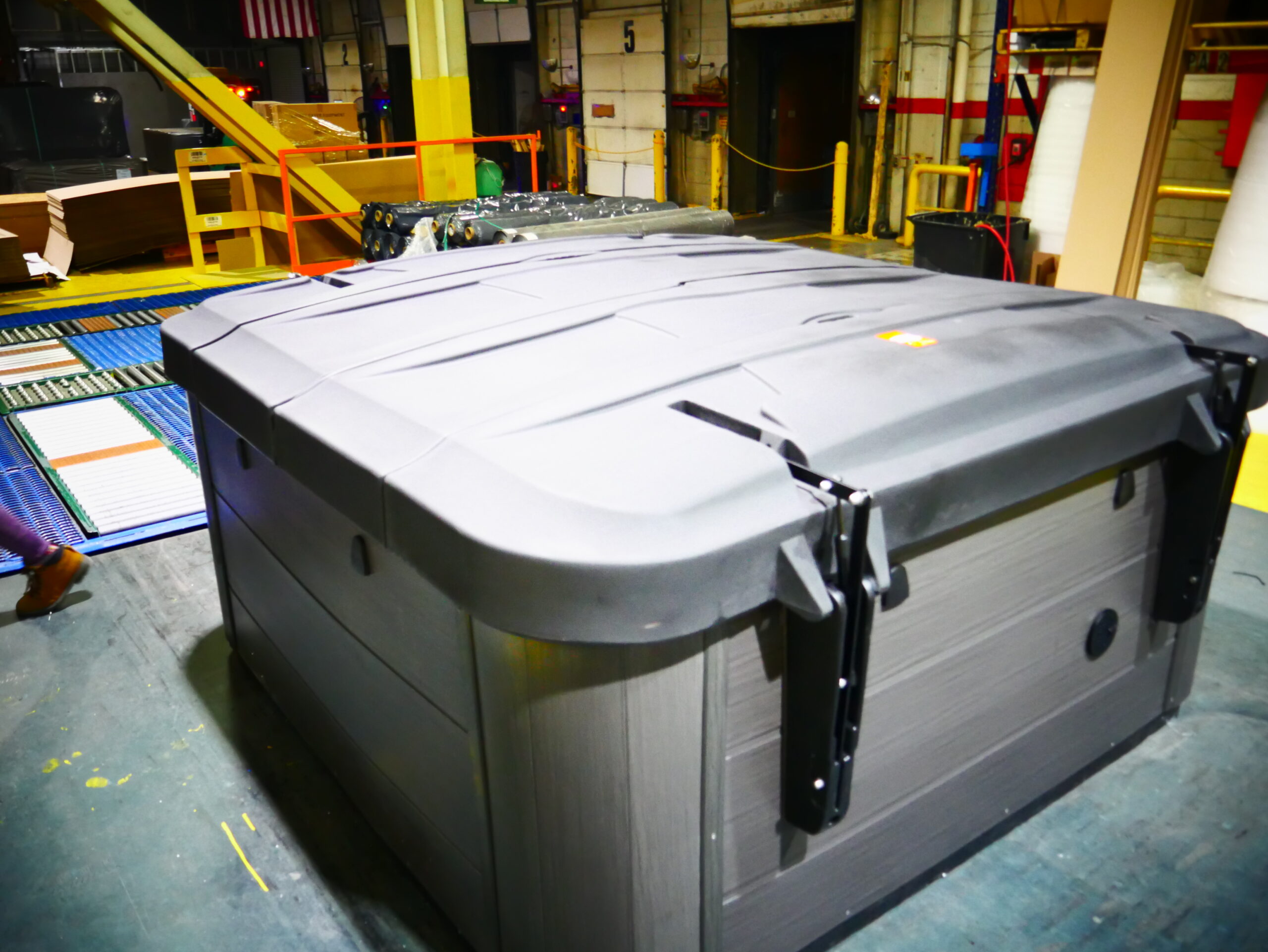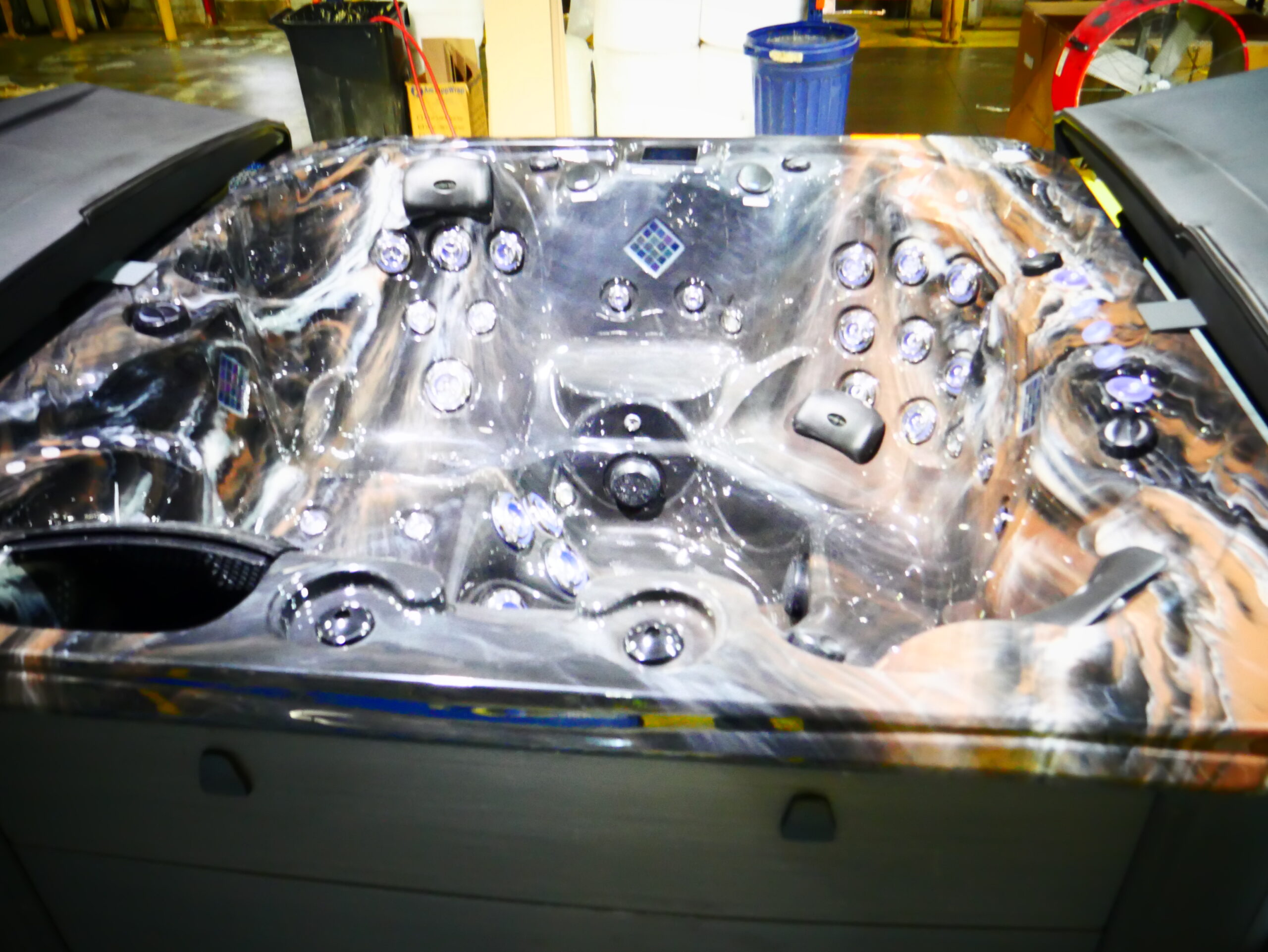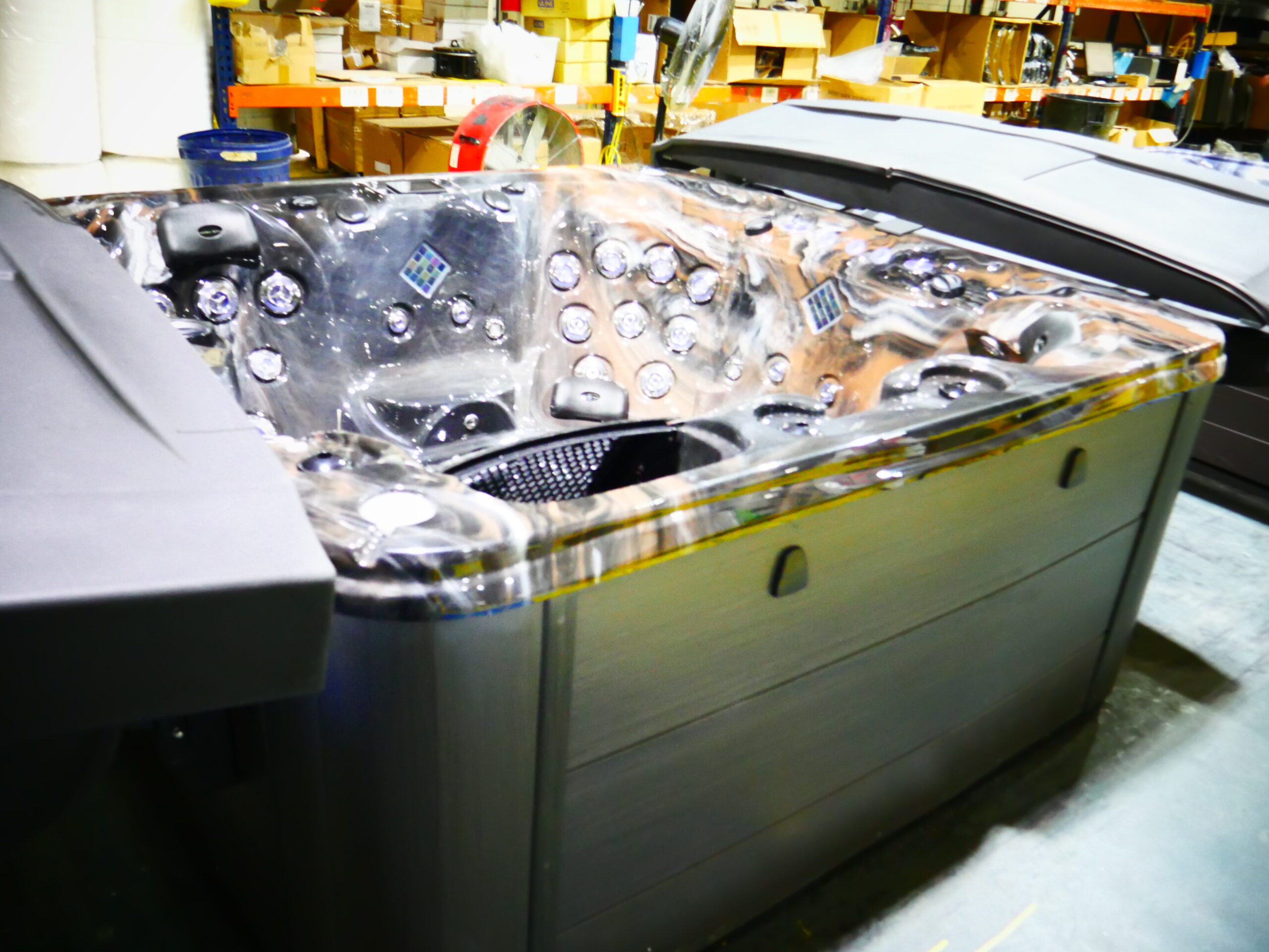 Designed for 6 people to enjoy comfort & luxury. This unit is made with our Tuff Top, midnight canyon acrylic and gray cabinets.