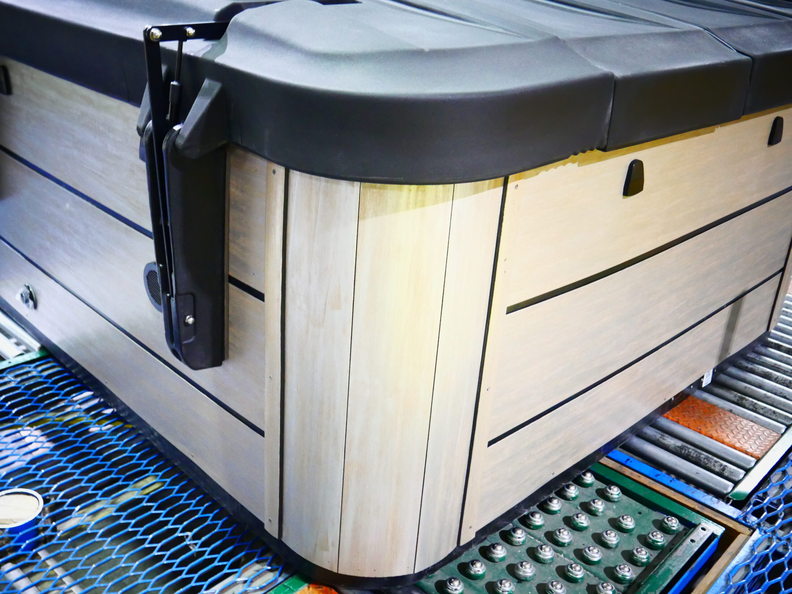 Designed for 6 people to enjoy comfort & luxury. This unit is made with our Tuff Top, sterling acrylic, barnwood cabinets and has been upgraded to include our LED light show, fire features, misters and auto-fill.