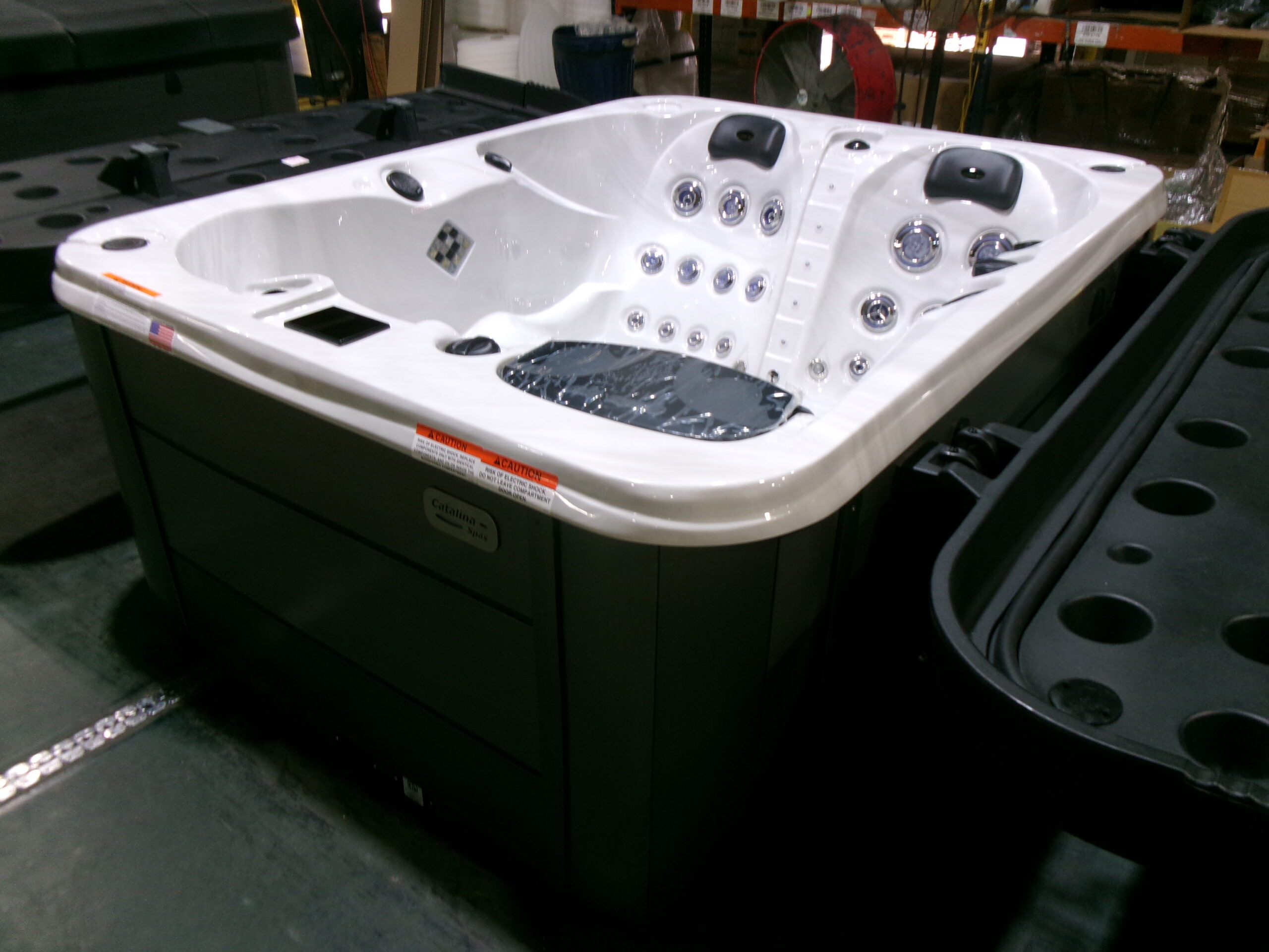Seats: 3 Jets: 40 Catalina LED Lit Jets Pumps: (1) 6 BHP EE 2-Speed Pump:(1) 4 BHP 1-Speed Pump Electrical: Hardwired Electrical, 220V 50A Dimensions: 67"x84"x38" Gallons: Min. 225/Max. 240 Weight: 910 lbs. Comments: this unit has an imperfection in the acrylic. SKU: AQL-LCL-540L-2-2-TT-SS Serial Number: 239667b
