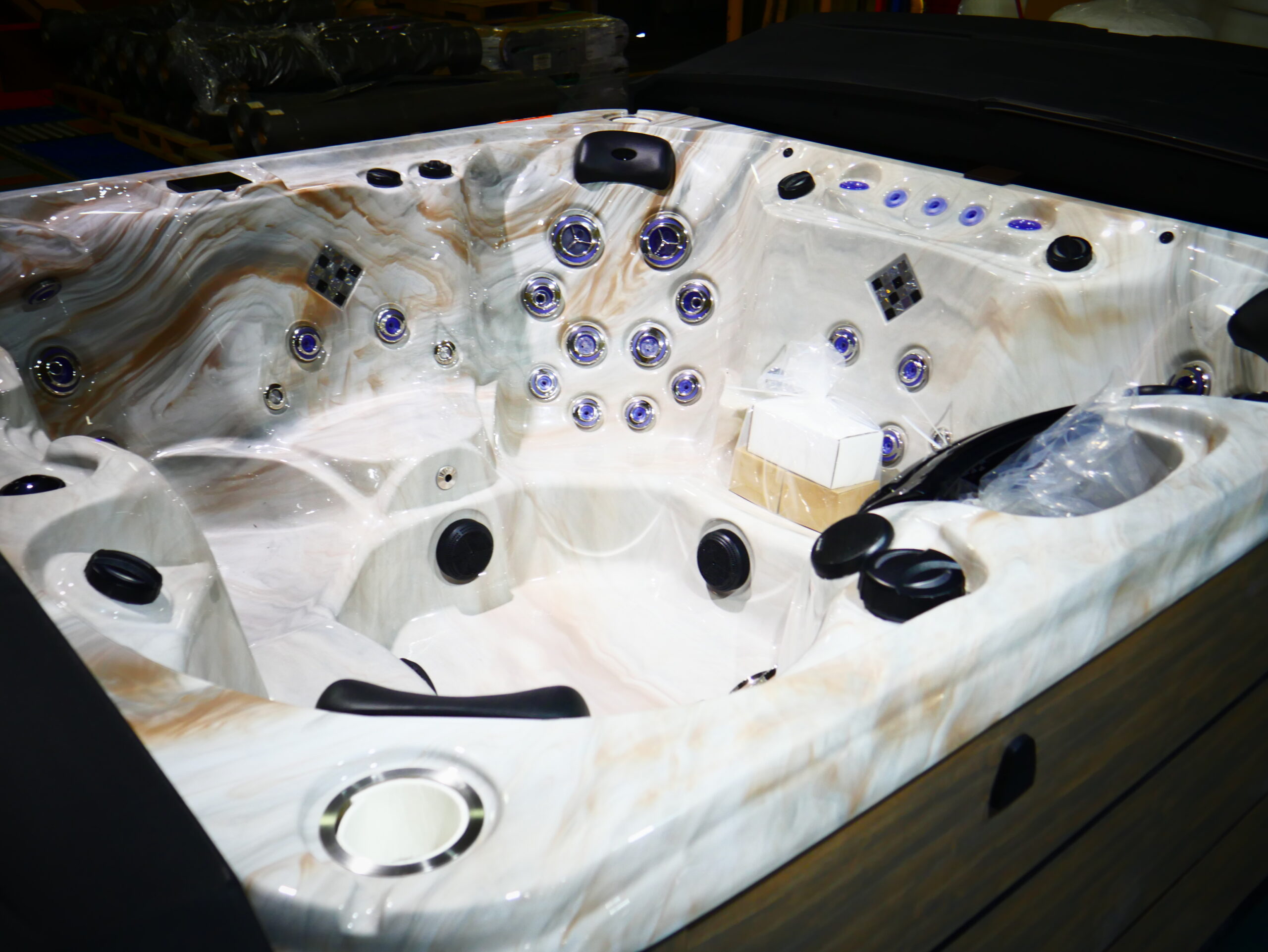 Seats: 7 Jets: 54 Catalina Jets Pumps: (1) 6 BHP EE 2-Speed Pump & (1) 6 BHP 1-Speed Pump Electrical: Hardwired Electrical, 220V 50A Dimensions: 92"x92"x44" Gallons: 375 Weight: 1100 lbs. Comments: this unit has minor acrylic imperfections. SKU: AQL-LCL-860B-2-2-F-E-M-TT-SMB Serial Number: 236721b