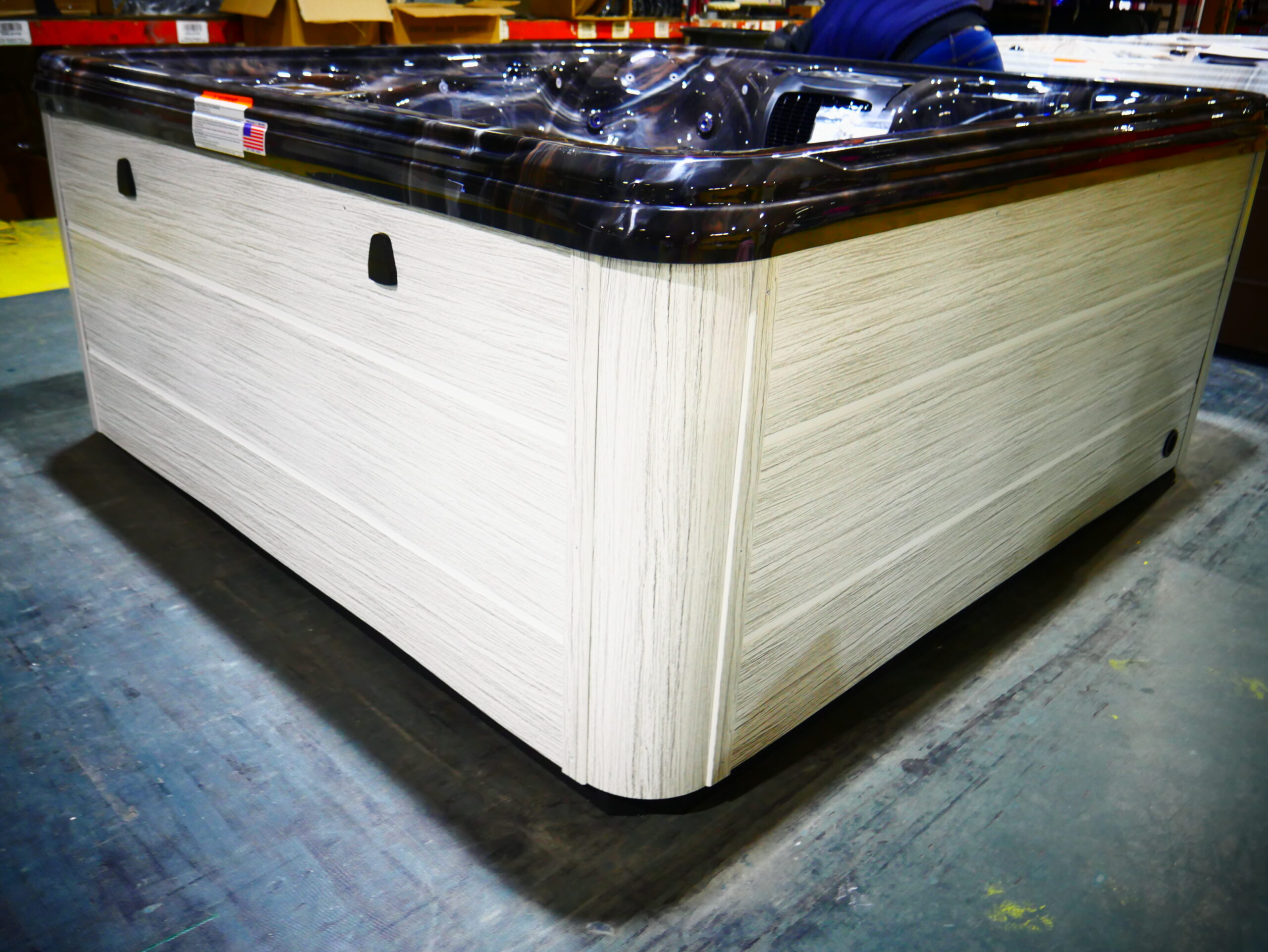 This spa is designed to for the whole family with over 50 jets and 7 seats. This spa was made with our midnight canyon acrylic and driftwood panels.