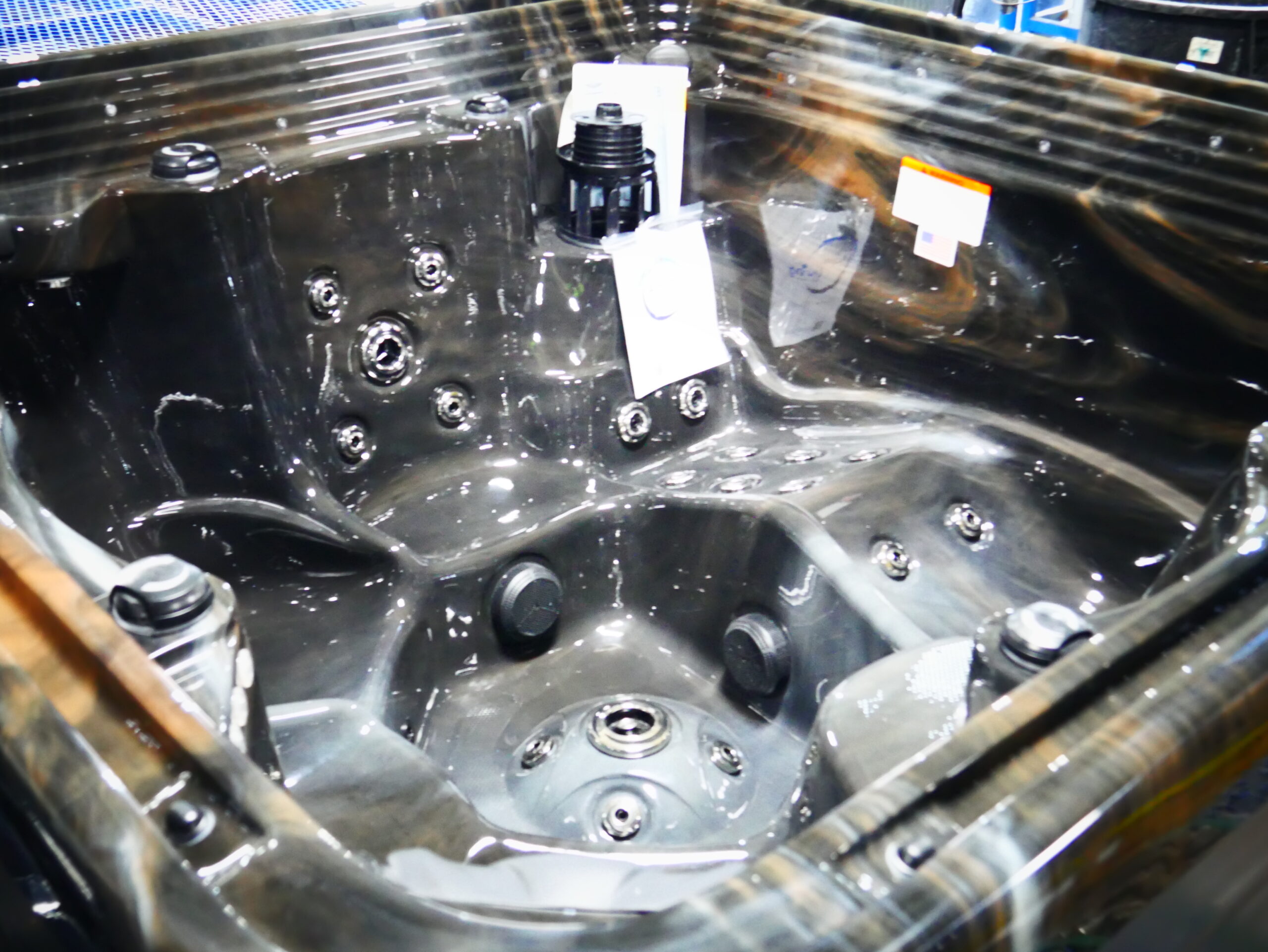 Seats: 6 Jets: 56 Therapy Jets Pumps: (1)6 BHP EE 2-Speed Pump & (1) 6 BHP 1-Speed Pump Electrical: Hardwired 220V 50Amp Dimensions: 83"x82.5"x41" Gallons: Min. 285/Max. 305 Weight: 860 lbs. Comments: this unit has minor acrylic imperfections in the seat. SKU: AQL-H10000-2-2-MG Serial Number: 239307b