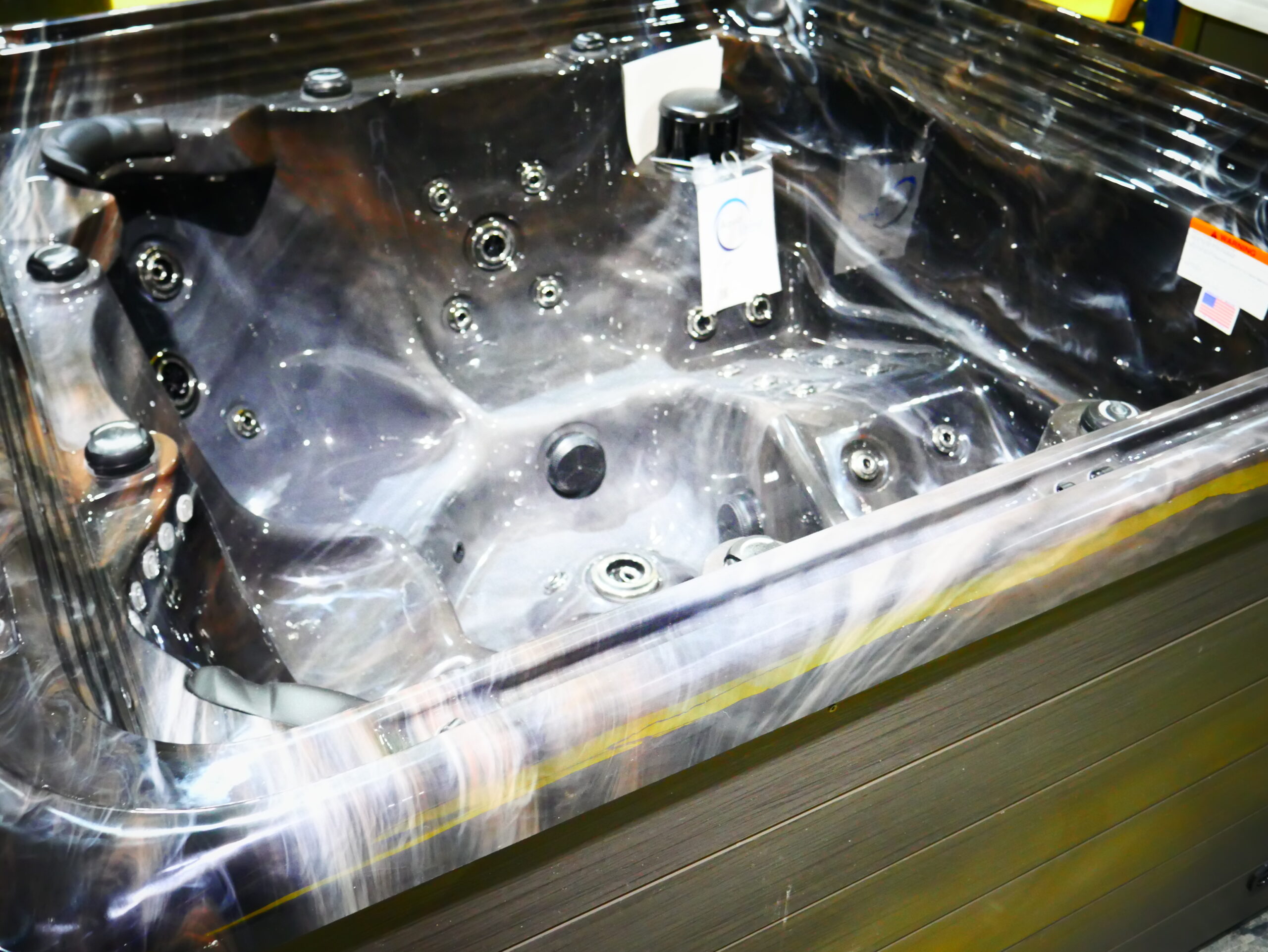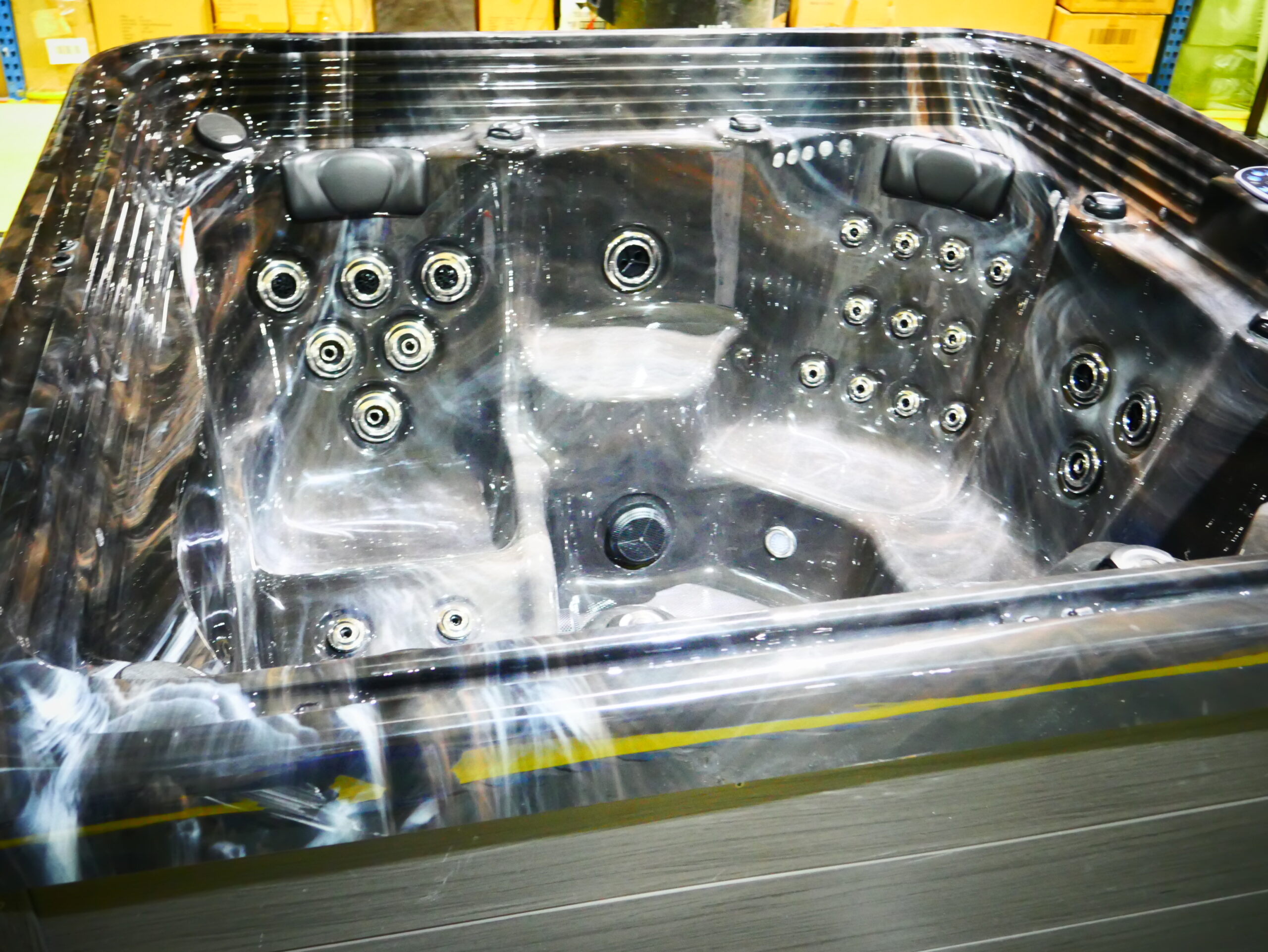 Seats: 6 Jets: 56 Therapy Jets Pumps: (1)6 BHP EE 2-Speed Pump & (1) 6 BHP 1-Speed Pump Electrical: Hardwired 220V 50Amp Dimensions: 83"x82.5"x41" Gallons: Min. 285/Max. 305 Weight: 860 lbs. Comments: this unit has minor imperfections in the acrylic. SKU: AQL-H10000-2-2-MG Serial Number: 241046b