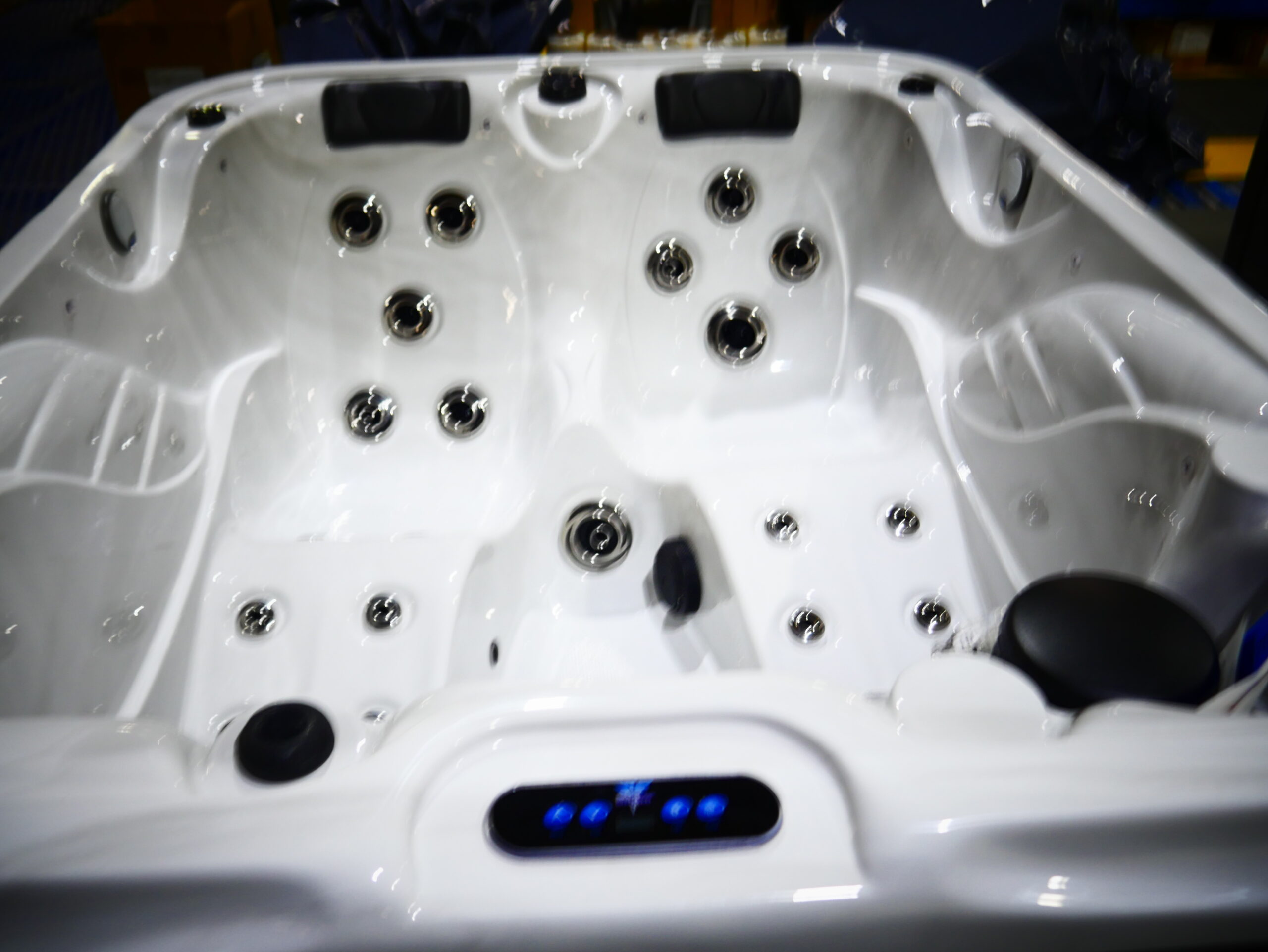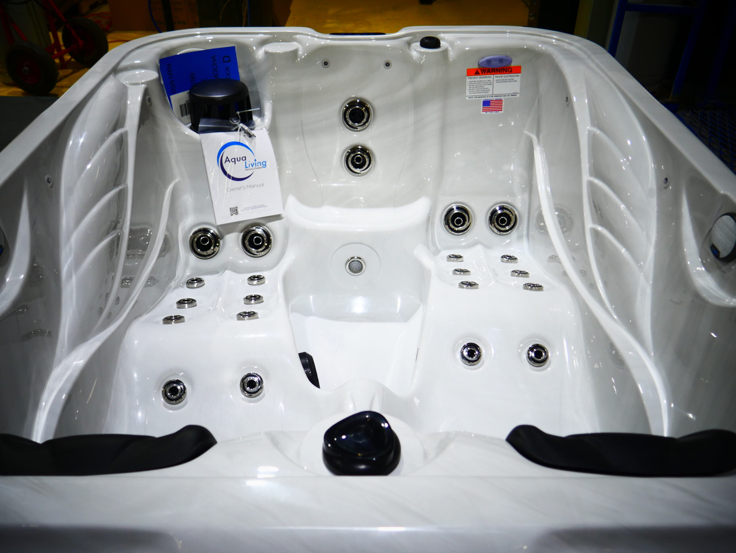 Seats: 3 Jets: 36 Black Jets Pumps: (1) 6 BHP EE 2-Speed Pump Electrical: Hardwired Electrical, 220V 50A Dimensions: 82” x 63” x 34″ – 6″ CR Gallons: Min. 180/Max. 210 Weight: 600 lbs. Comments:  SKU: AQL-G2-1-2-SM Serial Number: 170951rn