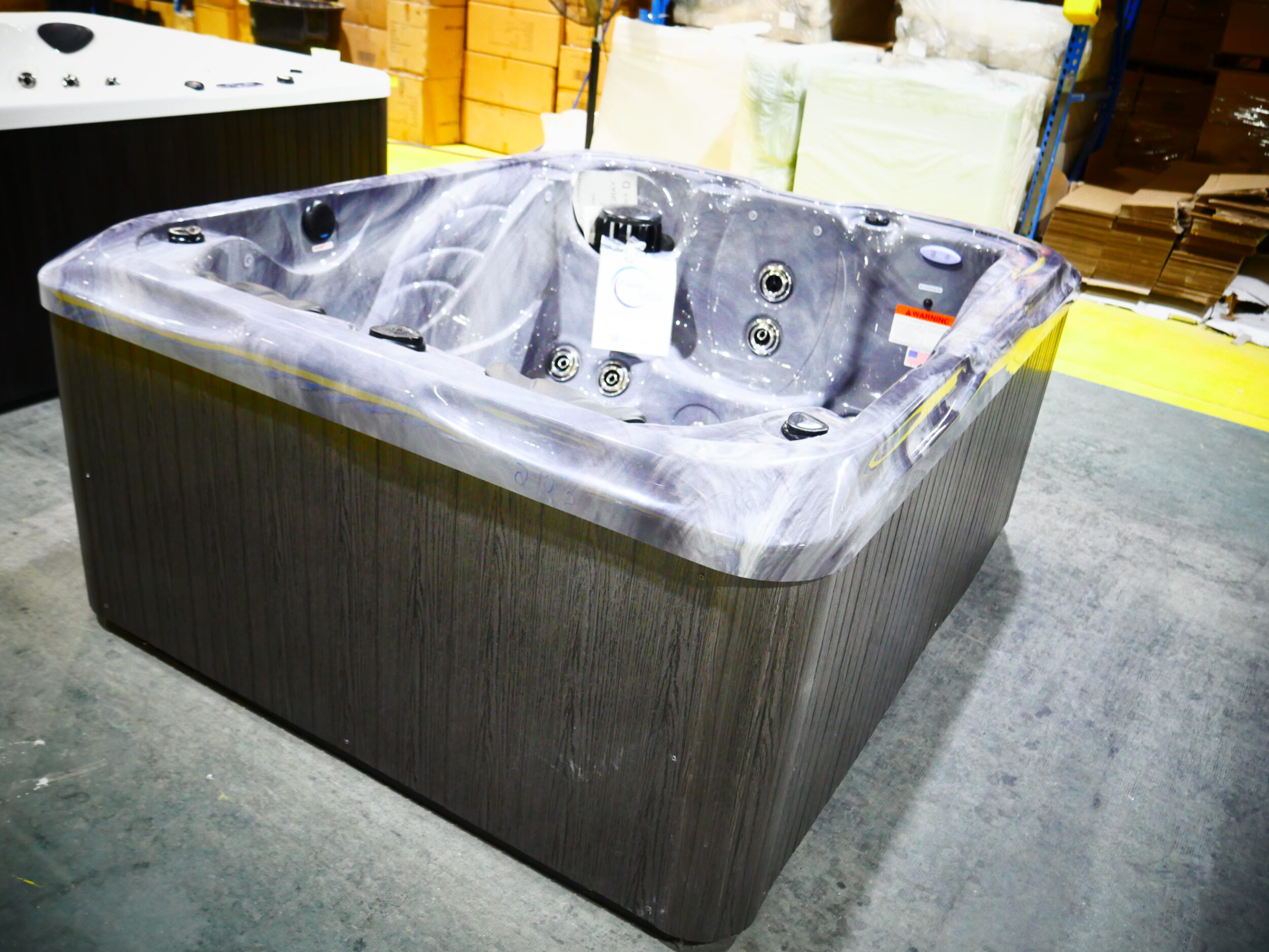 Seats: 3 Jets: 32 Black Jets Pumps: (1) 6 BHP EE 2-Speed Pump Electrical: Hardwired Electrical, 220V 50A Dimensions: 78.25” x 63” x 32″ – 6″ CR Gallons: Min. 180/Max. 210 Weight: 600 lbs. Comments: This unit has an acrylic repair on the corner SKU: AQL-G2-1-2-CIR-U-WI-SCG Serial Number: 219326rb