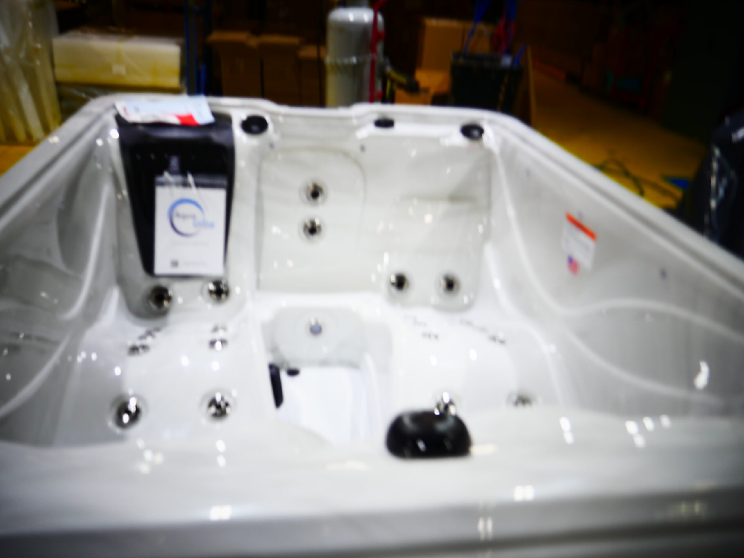 Seats: 3 Jets: 36 Black Jets Pumps: (1) 6 BHP EE 2-Speed Pump Electrical: Hardwired Electrical, 220V 50A Dimensions: 82” x 63” x 34″ – 6″ CR Gallons: Min. 180/Max. 210 Weight: 600 lbs. Comments: This spa has an imperfection in the filter housing. SKU: AQL-WG2-1-2-SG Serial Number: 239448b