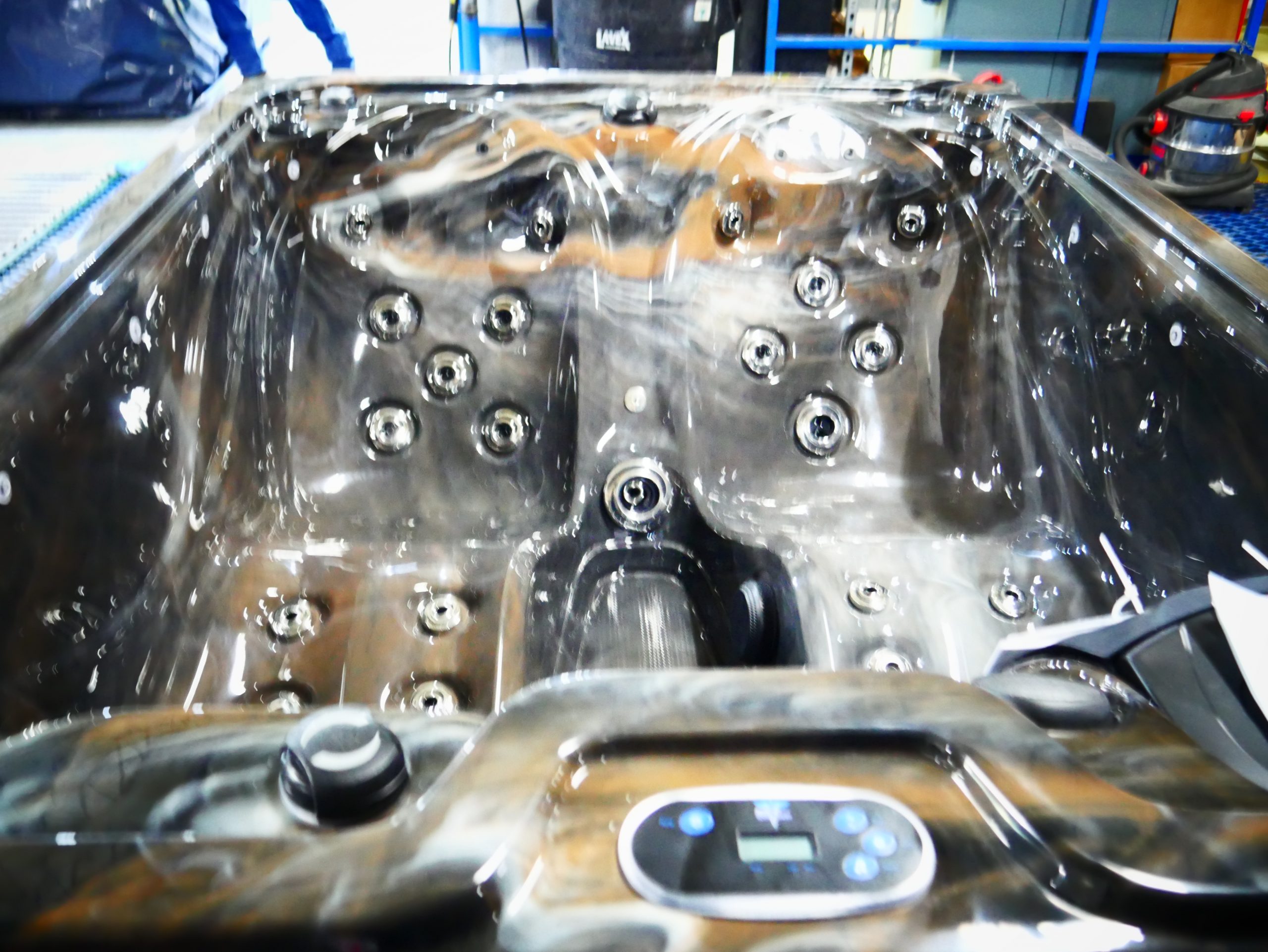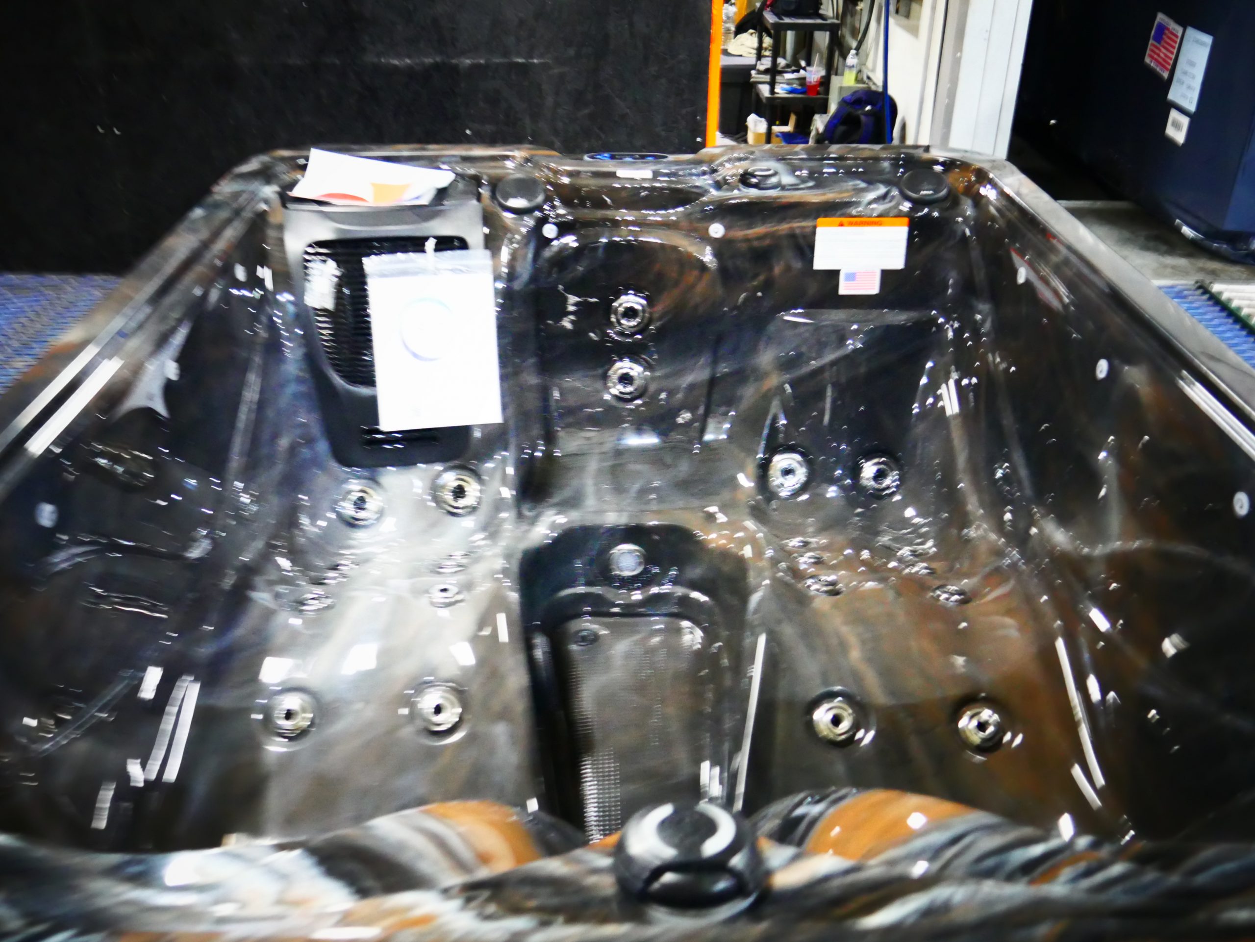 This spa is designed for 3 people to enjoy, including dual loungers for full body massage. This unit is made with midnight canyon acrylic, mocha cabinetry and has been upgraded to include Wi-Fi, UV light filtration system, circulation pump technology and extreme foam.