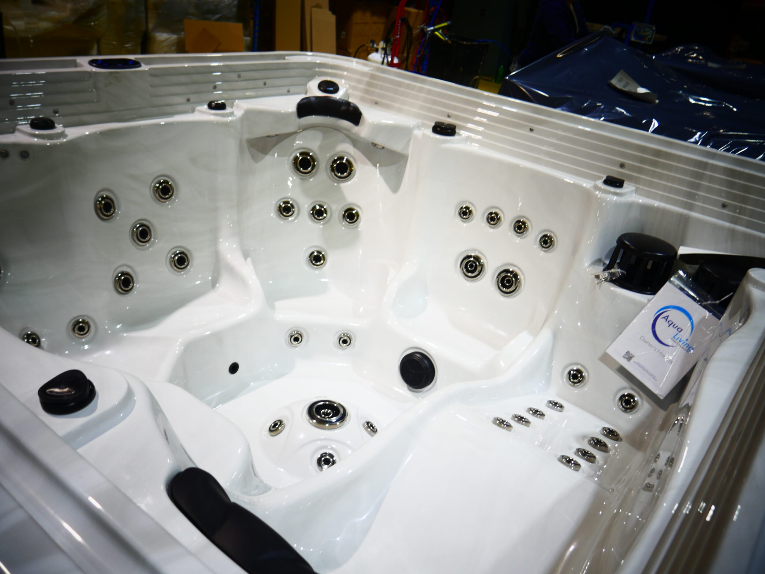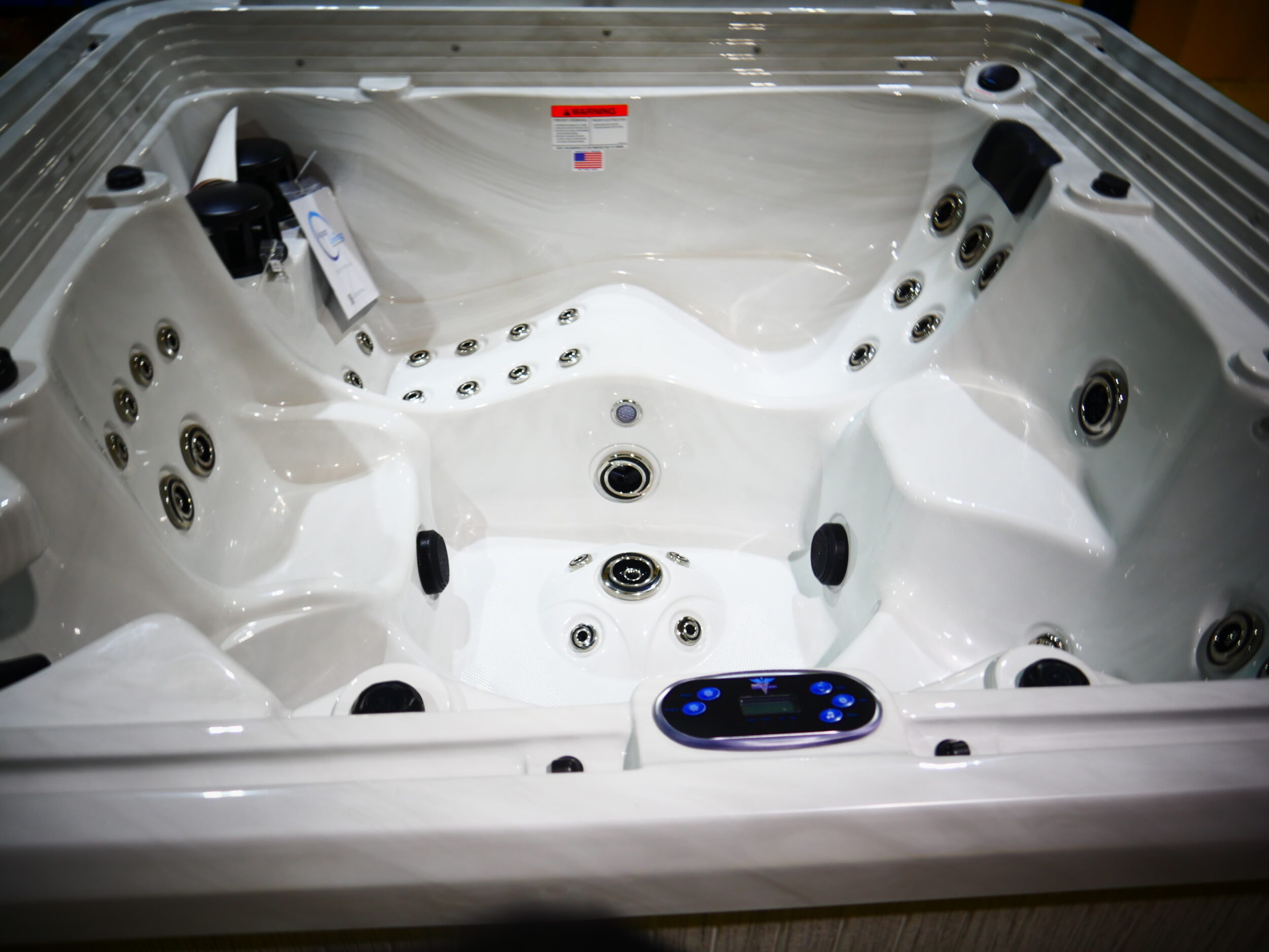 Seats: 6 Jets: 56 Therapy Jets Pumps: (1)6 BHP EE 2-Speed Pump & (1) 6 BHP 1-Speed Pump Electrical: Hardwired 220V 50Amp Dimensions: 93"x93"x40" Gallons: 320 Weight: 1000 lbs. Comments: This unit has some minor acrylic imperfections. SKU: AQL-20000-2-2-CIR-U-WI-SW Serial Number: 217692rb