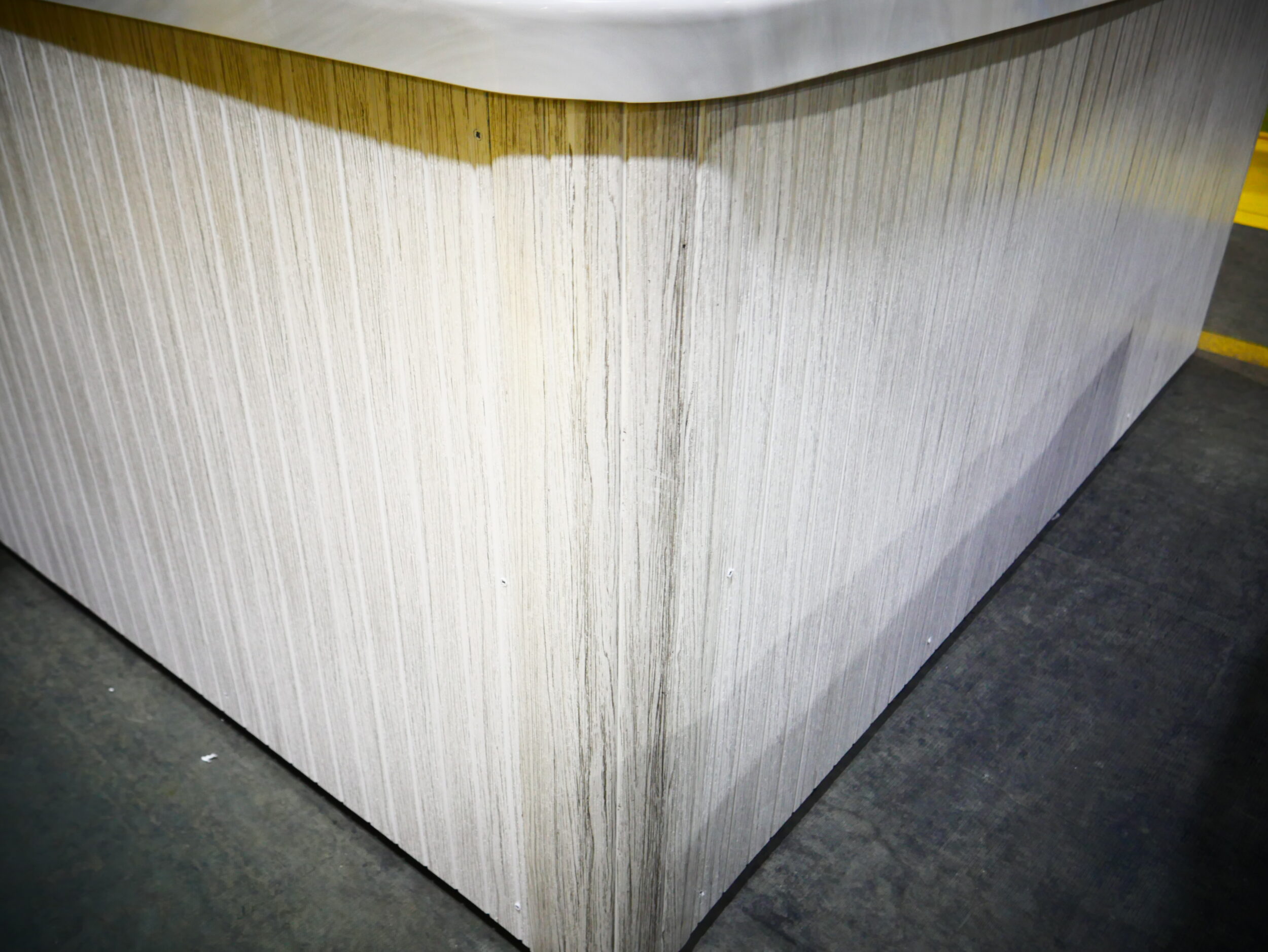One of our 360 degree waterfall spas, is designed for 6 people to enjoy, including a lounger for full body massage. This unit is made with sterling acrylic, driftwood cabinets and has been upgraded to include Wi-Fi, UV light filtration, and circulation pump technology.