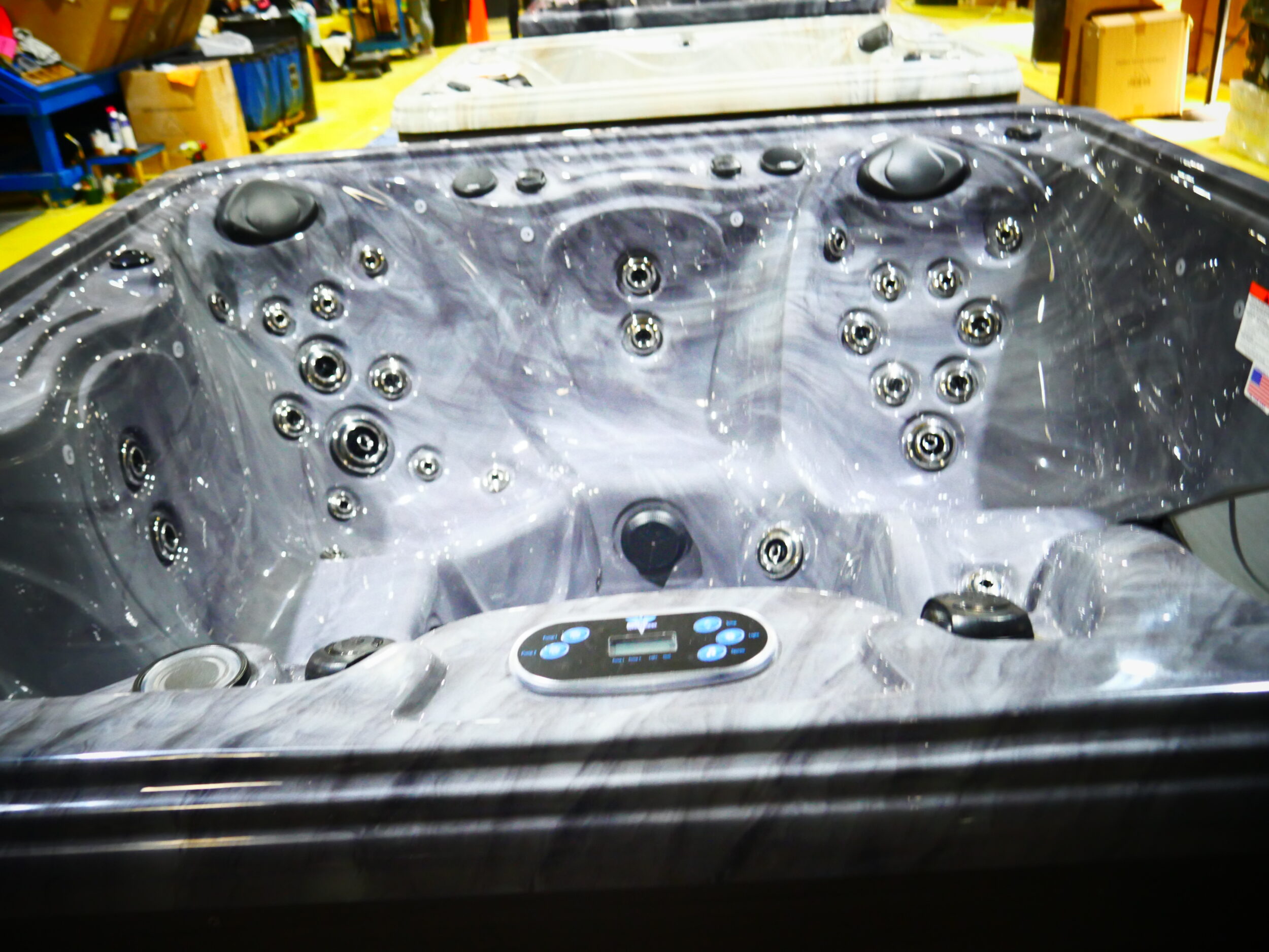 Designed for 6 people to enjoy comfort & luxury. This spa is made with storm cloud acrylic and gray cabinets.