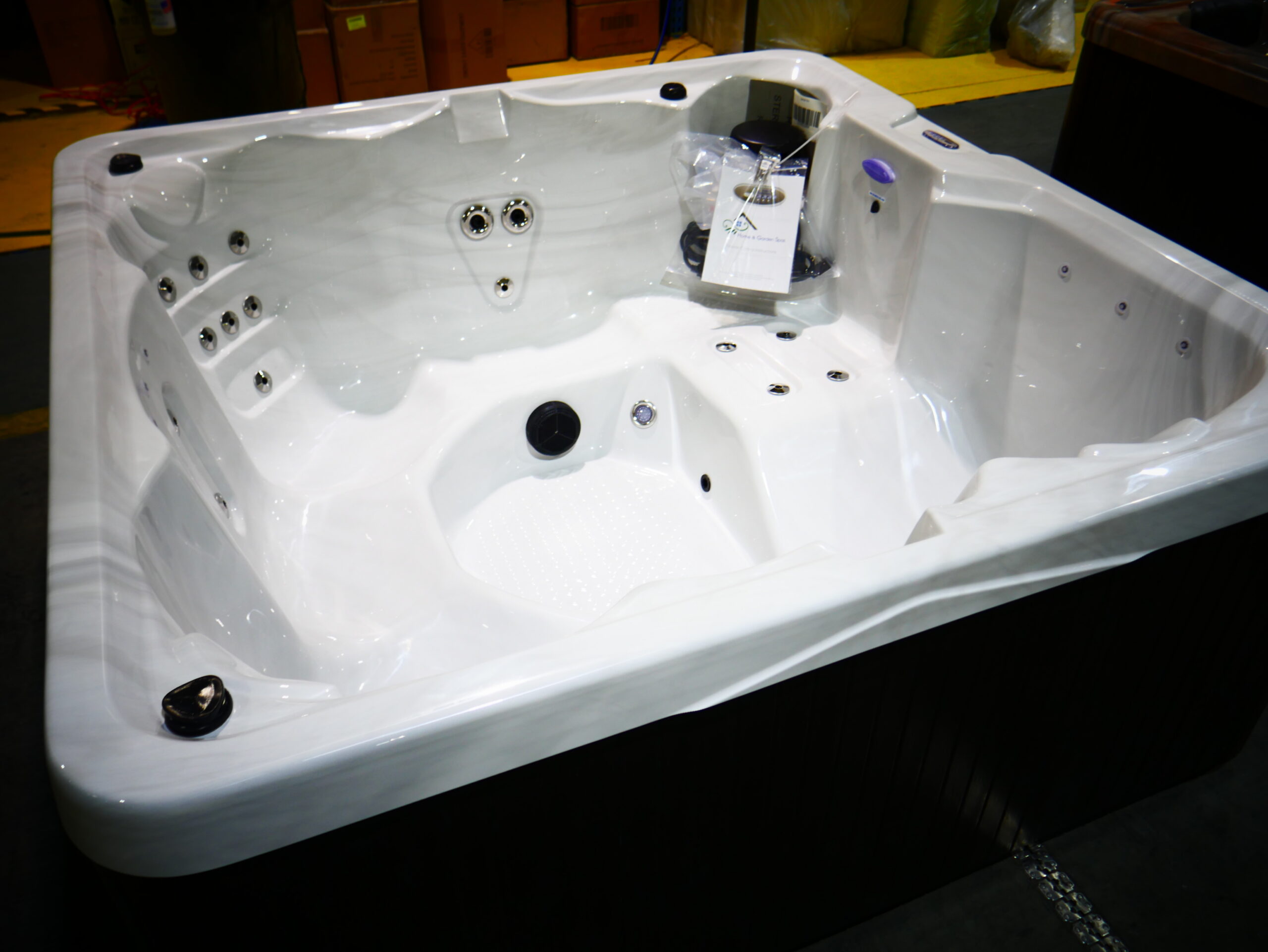 Seats: 6 Weight: 600 lbs. Pumps: (1) 1.5 BHP EE 2-Speed Pump Jets: 29 Black Stainless Jets Electrical: Dedicated plug 20A, 15A GFCI Cord, 110V Dimensions: 75.25” x 75.25” x 33” - 6” CR Minimum Gallons: 190 Maximum Gallons: 215 Comments: This unit is in new condition but was returned and rerun though the production line. SKU: HG-HG29-1-1-SM Serial Number: 239422rn