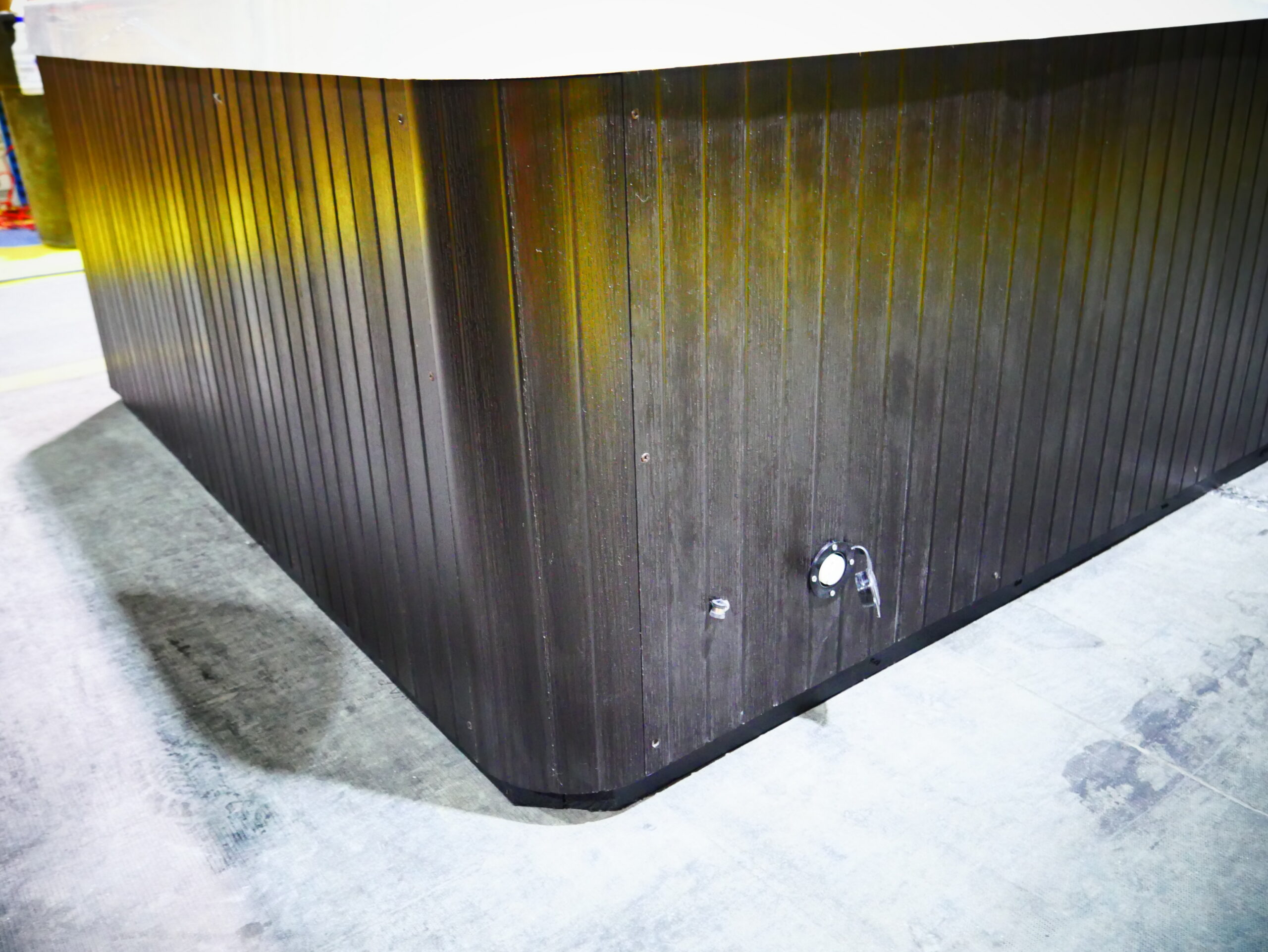 Designed for 6 people to enjoy comfort and luxury. This unit is made with our sterling acrylic and mocha cabinets.
