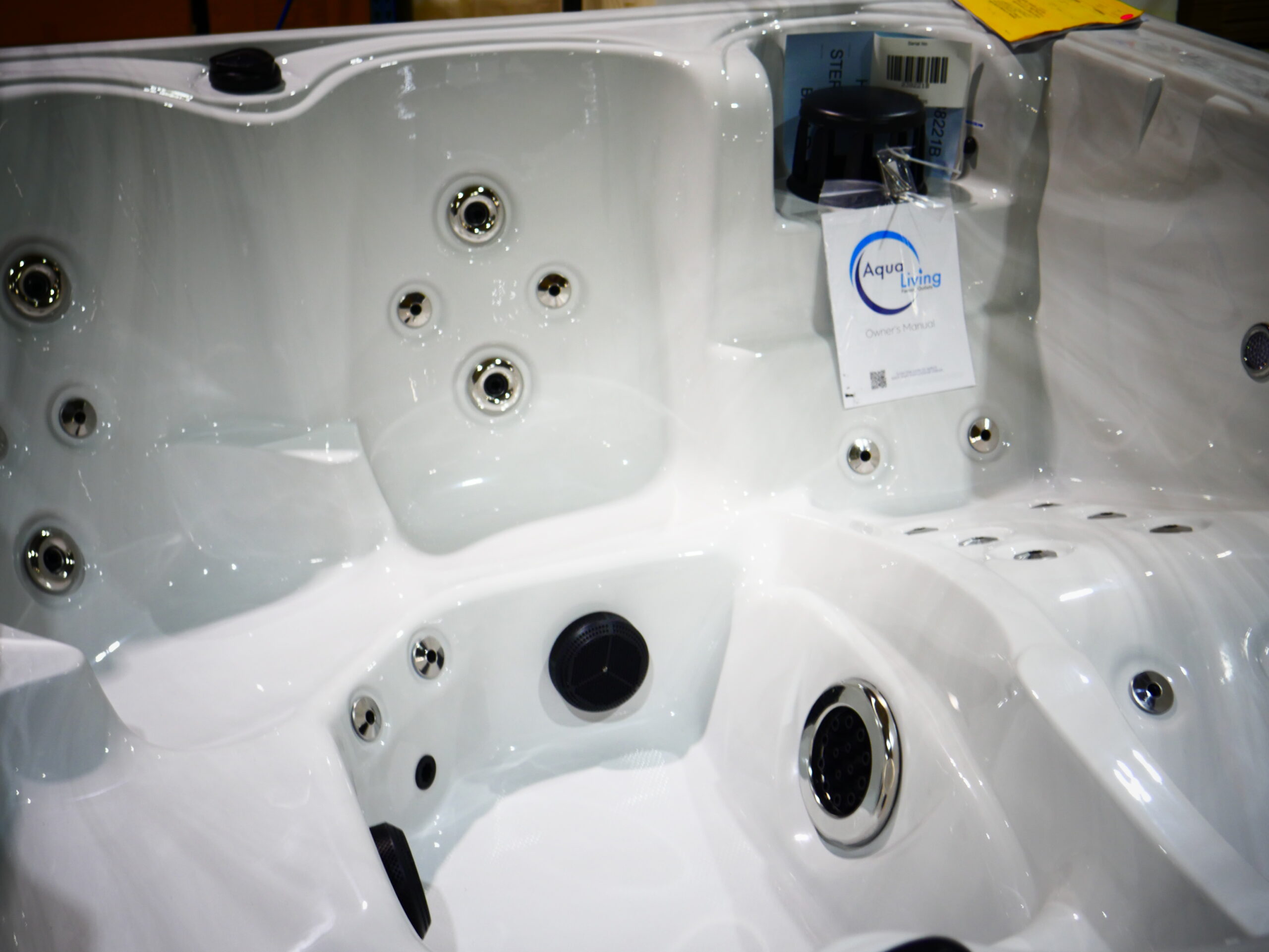 Seats: 6 Jets: 45 Therapy Jets Pumps: (1) 6HP and (1) 4HP Electrical: Hardwired 220V 50Amp Dimensions: 82″ x 82″ x 35″ Gallons: 350 Weight: 800 lbs. Comments: this spa has minor acrylic imperfections. SKU: AQL-HG-HG71-2-2-SM Serial Number: 238221B