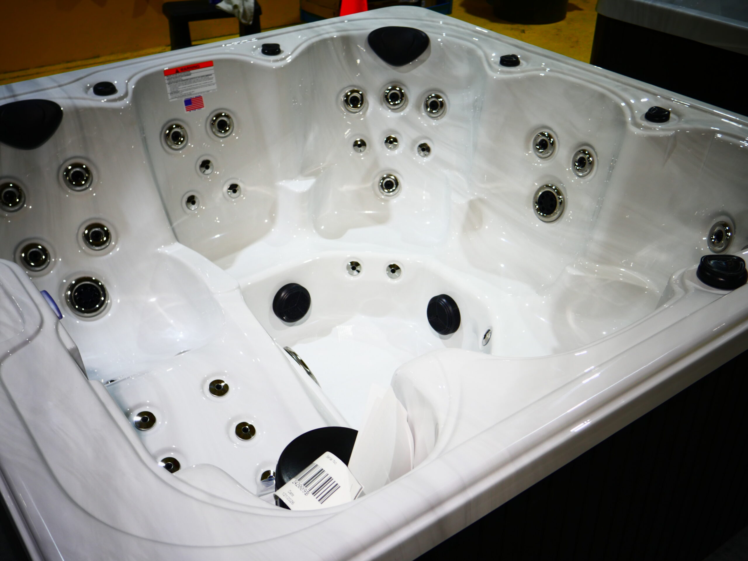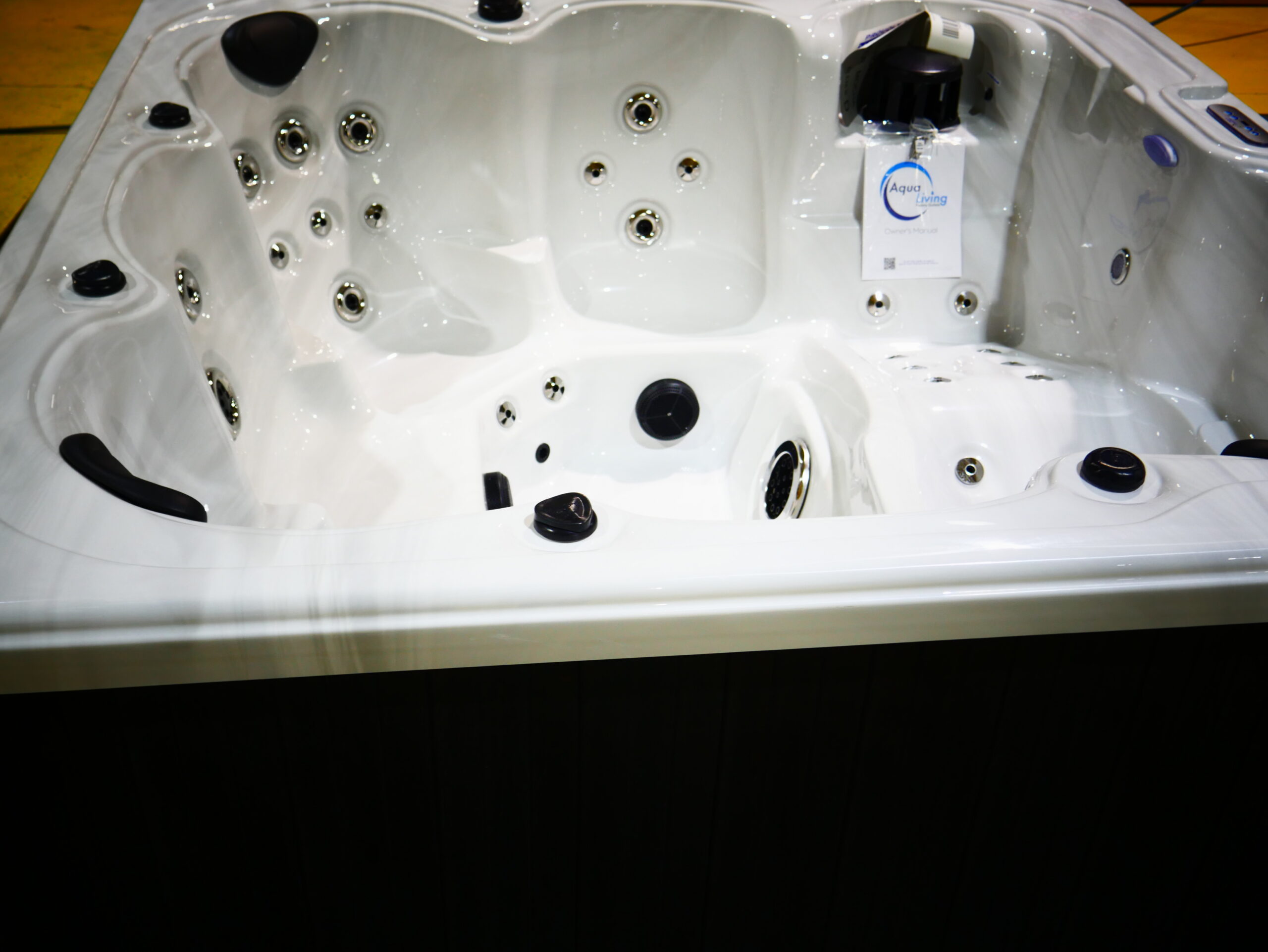 Designed for up to 6 people to enjoy both comfort and luxury. This spa is made with our sterling acrylic and mocha cabinets.