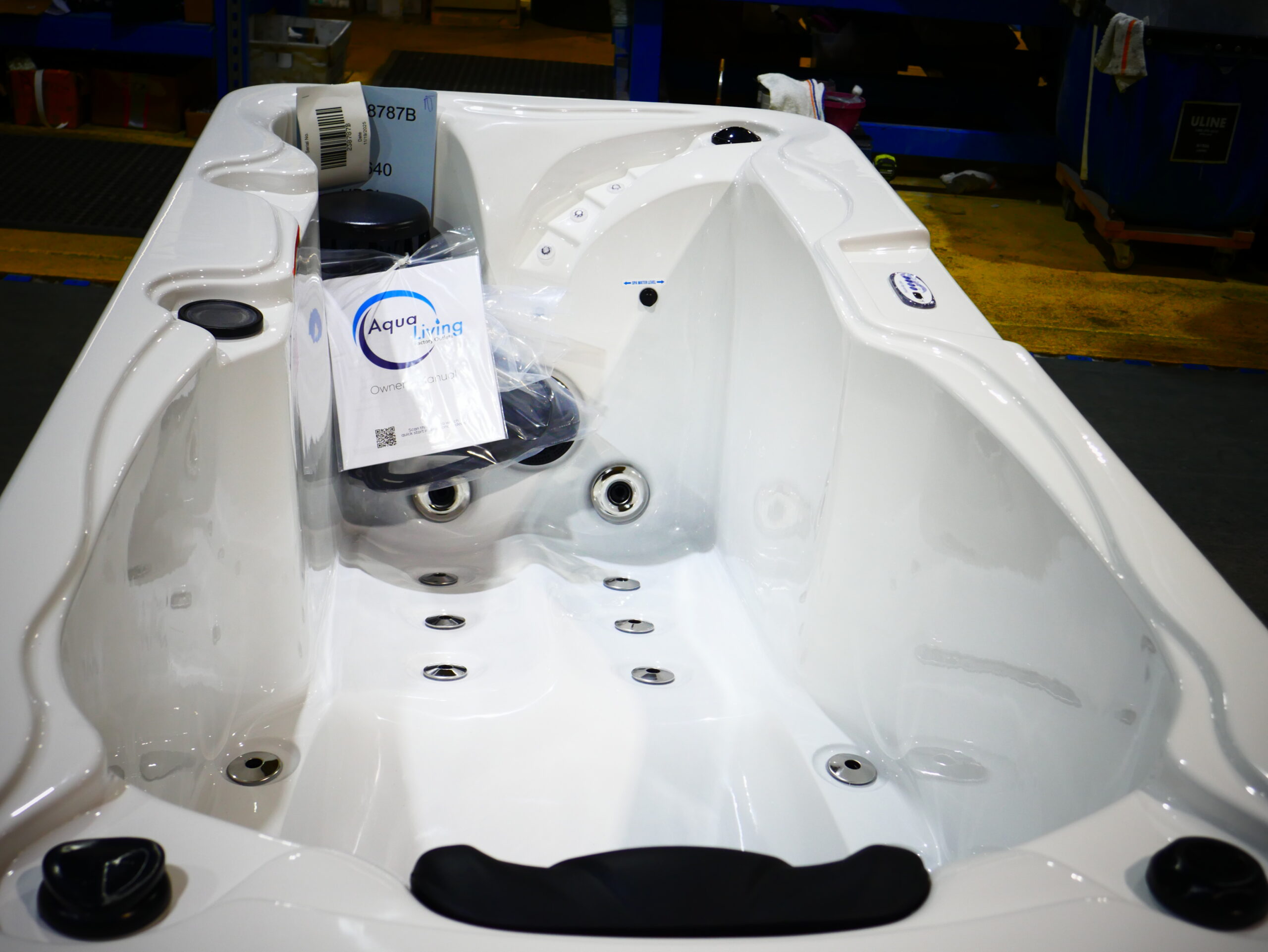Seats: 1 Jets: 19 Therapy Jets Pumps: (1) 1.5 BHP EE 2-Speed Pump Electrical: Dedicated Plug, 20A 15A GFCI Cord, 110V Dimensions: 80” x 36” x 32″ Gallons: Min. 85 / Max. 100 Weight: 480 lbs. Comments: This unit has an in-house acrylic repair in the seat. SKU: AQL-HBSL-1-1-O-FF-WM Serial Number: 238787b