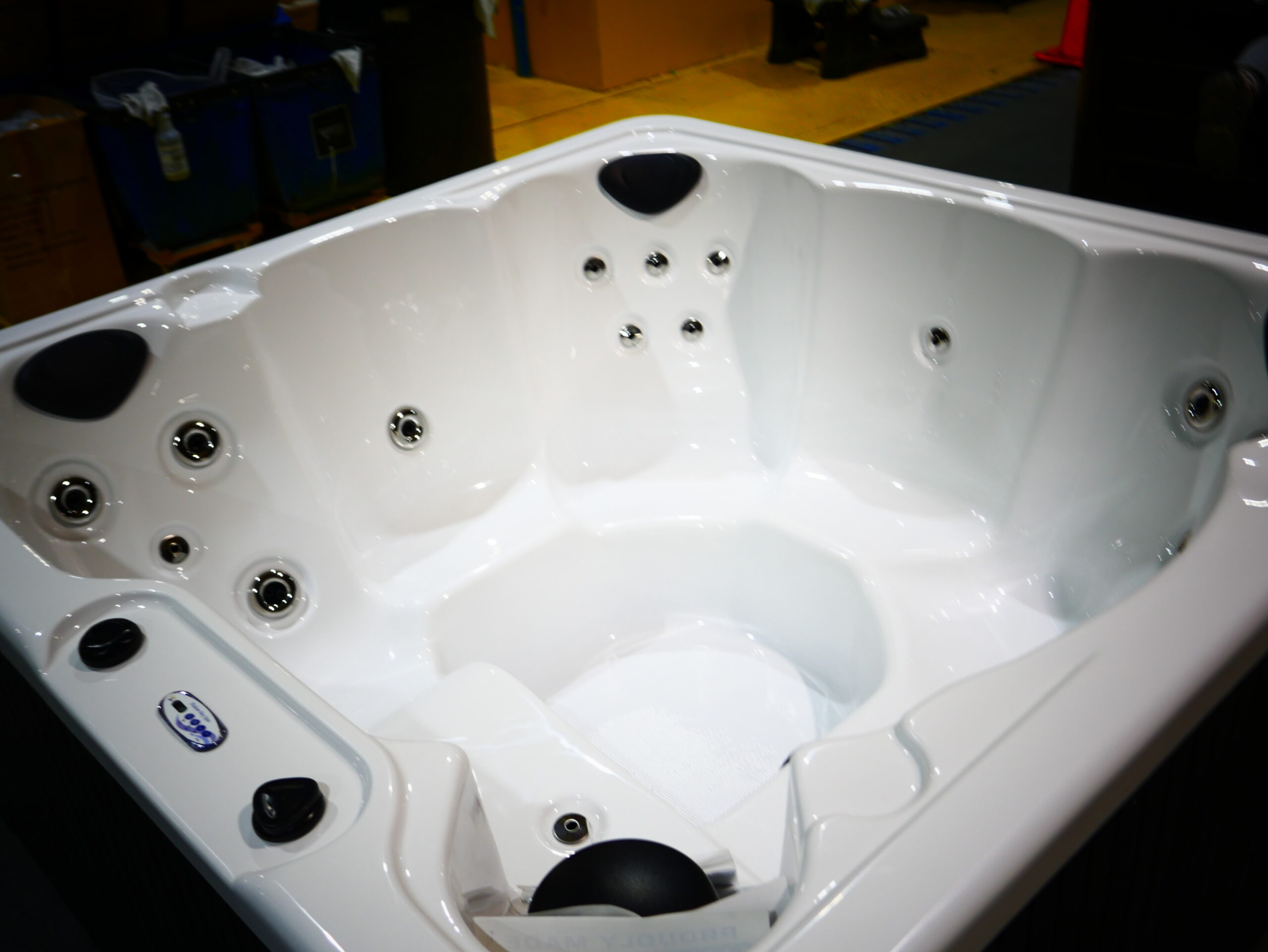 Seats: 6 Jets: 19 Therapy Jets Pumps: (1) 3 BHP EE 2-Speed Pump Electrical: Dedicated Plug 20A GFCI Cord, 110V Dimensions: 76"x76"x35" Gallons: Min. 225/Max. 255 Weight: 645 lbs. Comments: This unit has a slanted top rail. Sku: HB-HB1900-1-1-O-WM Serial Number: 240896rn