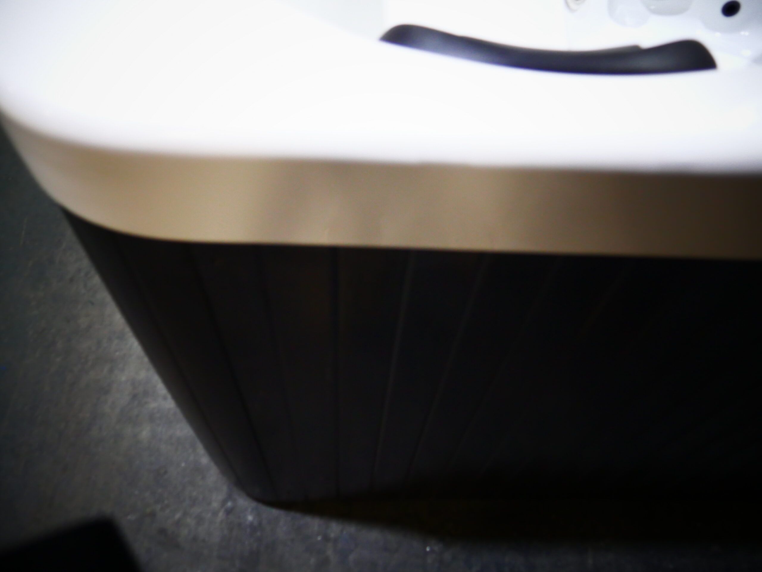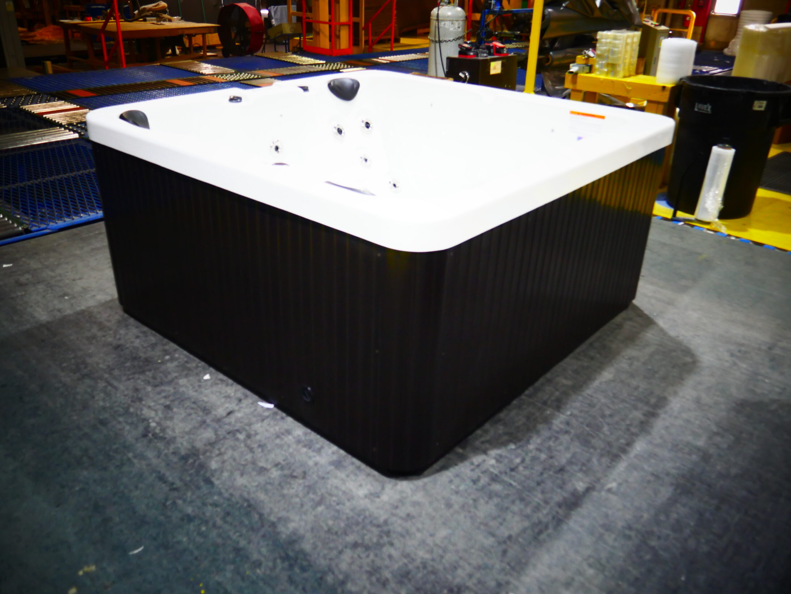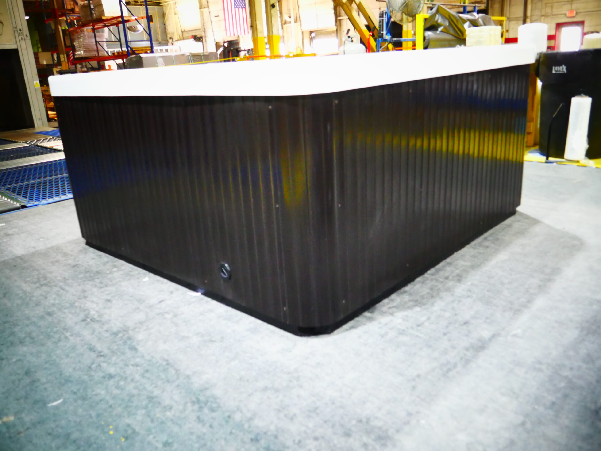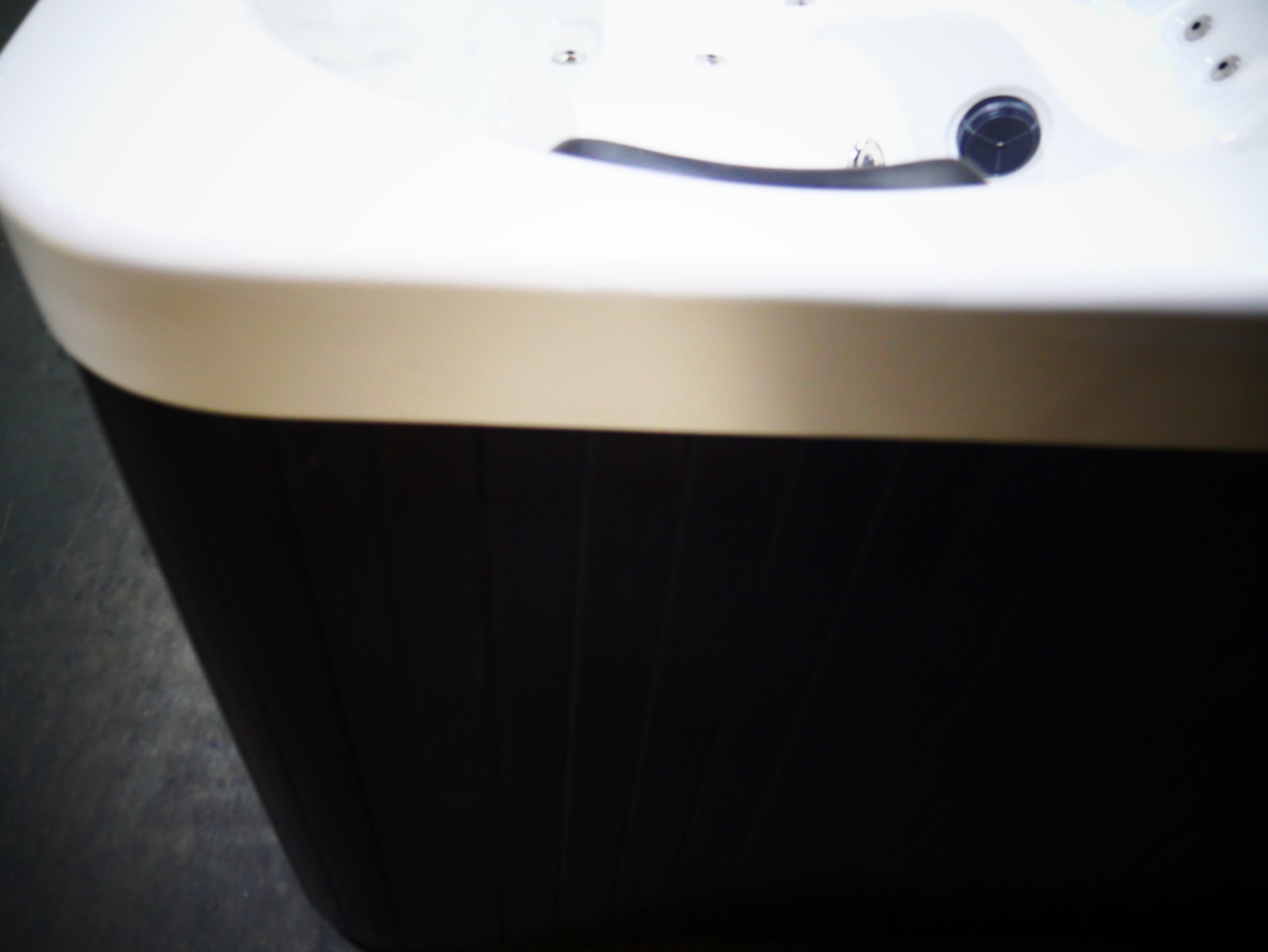 The perfect way to relax! Seating up to three people with dual loungers and a captain's chair, this unit was made with white acrylic, mocha cabinets and has been upgraded to include ozone.