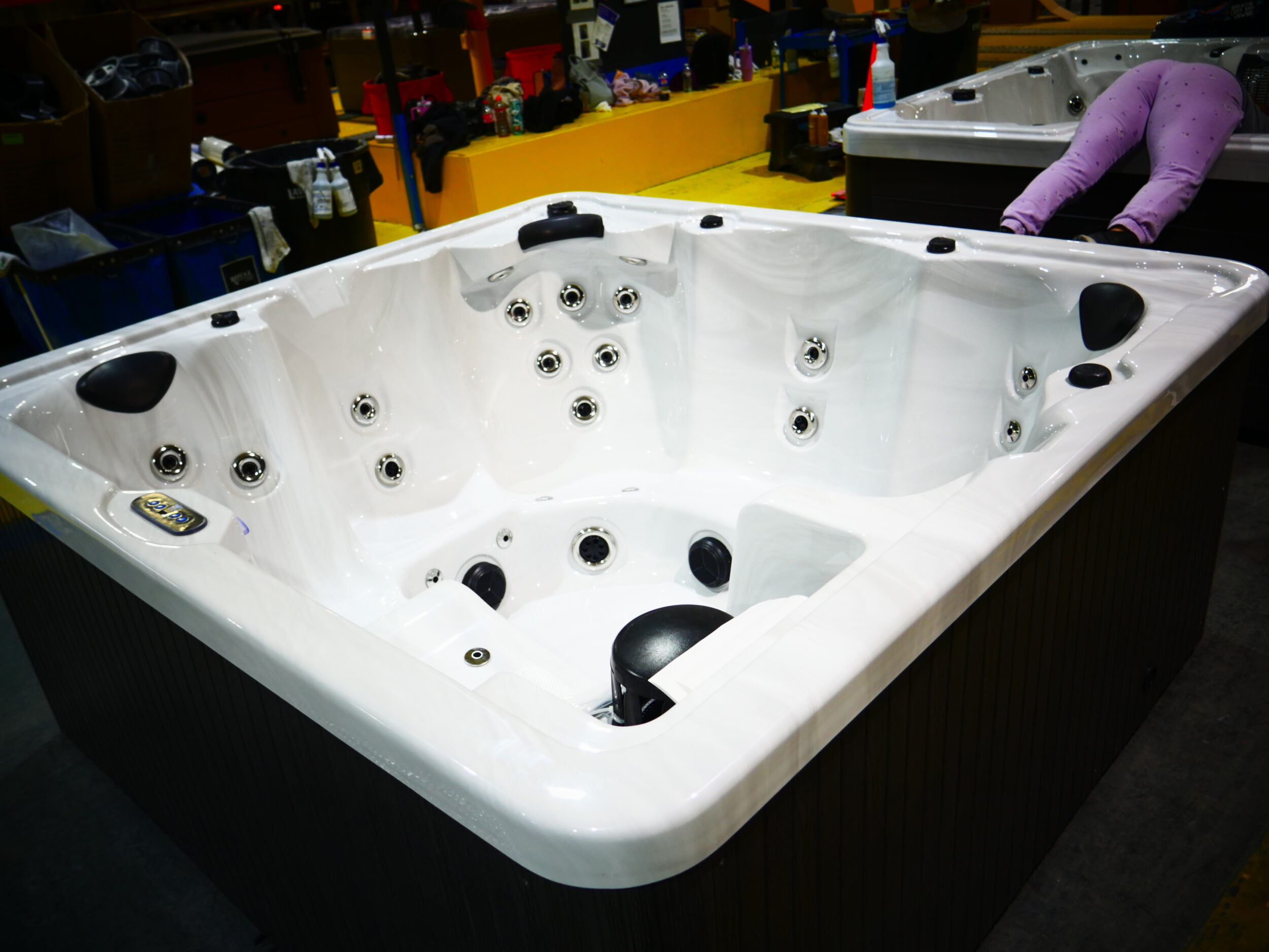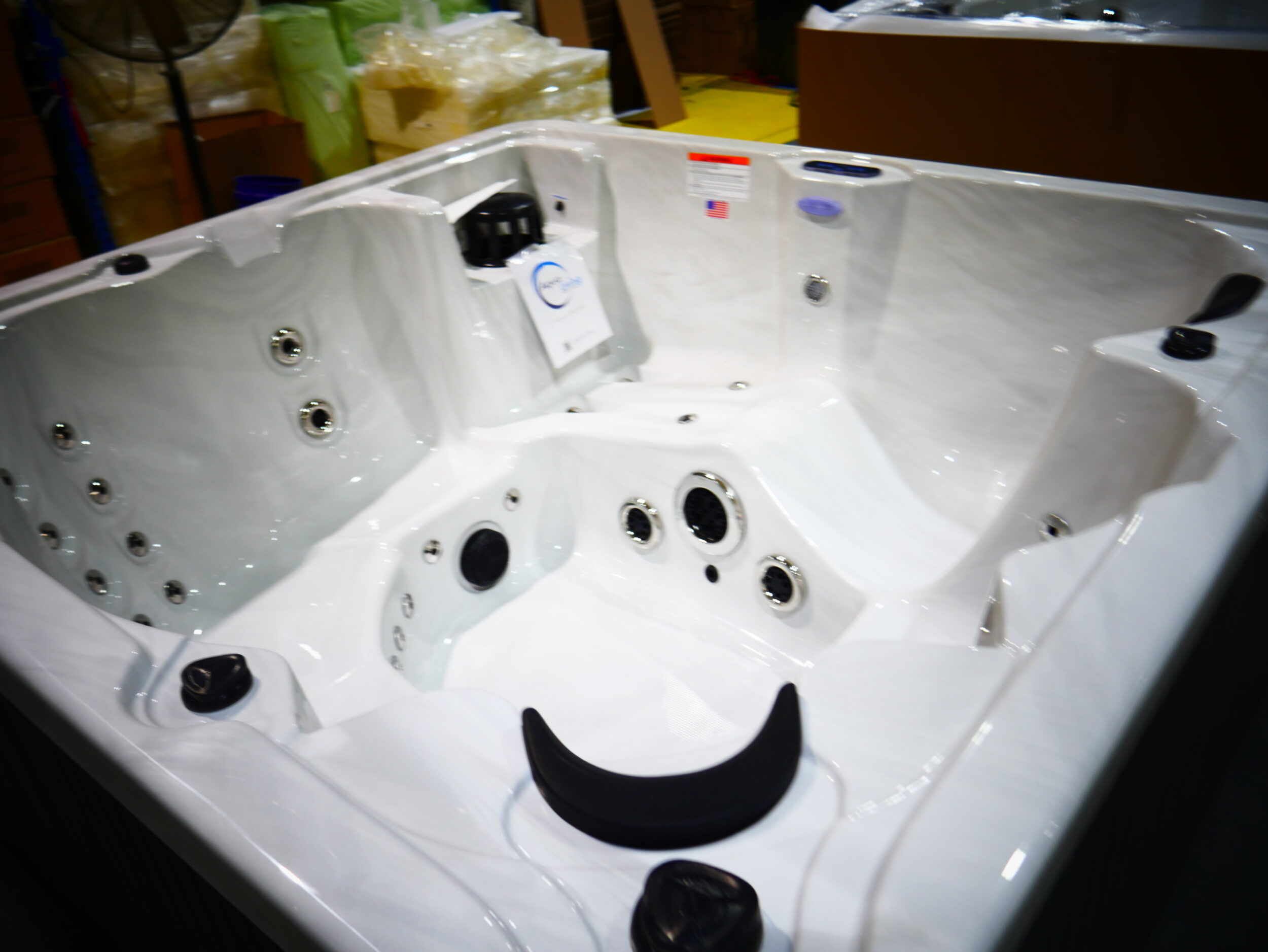 The Perfect place to relax with family and friends for up to 6 people. This unit is made with Sterling acrylic, Coastal Gray cabinets and has been upgraded to include ozone.