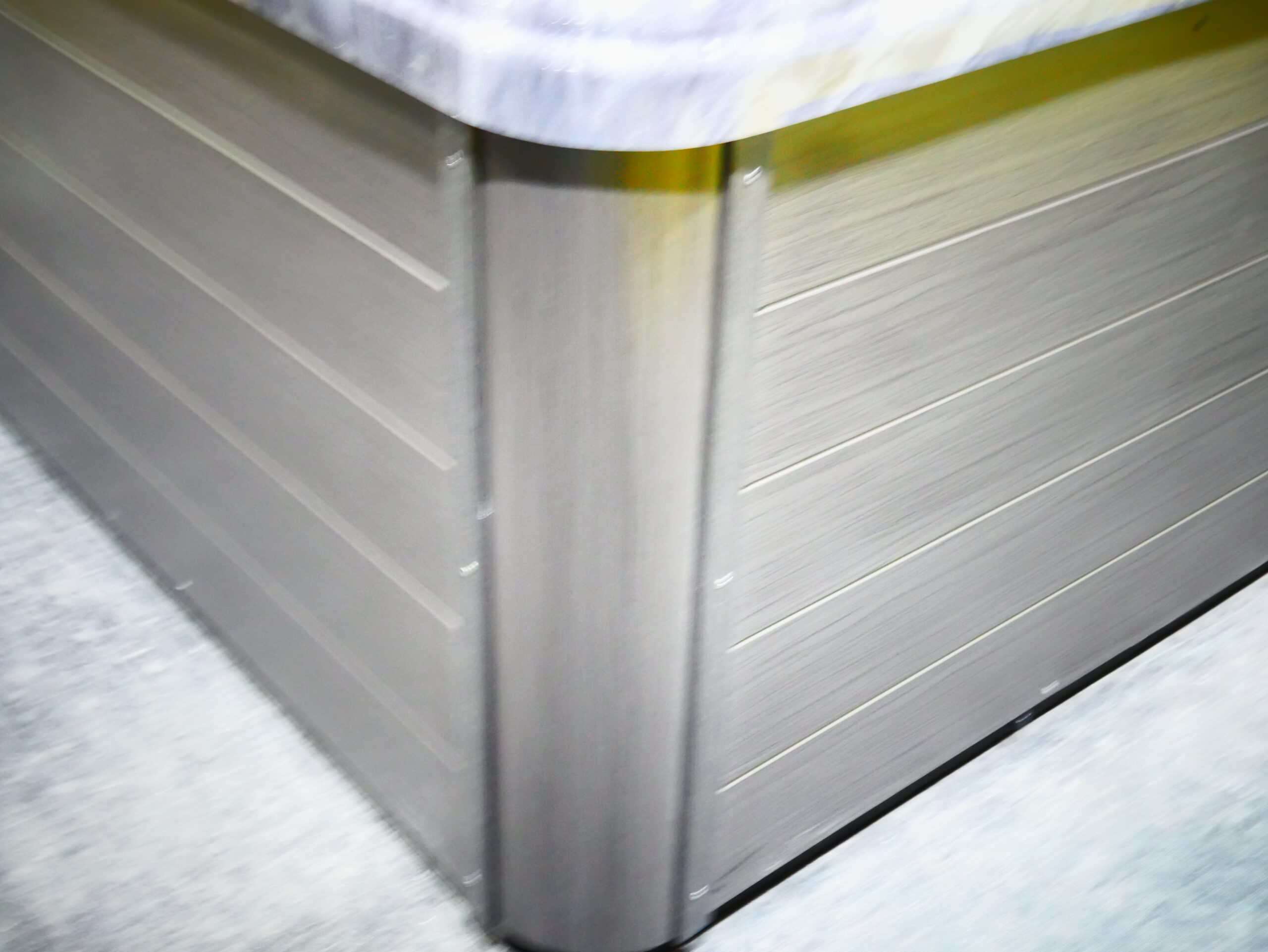 Designed for up to 5 people to enjoy comfort and luxury, this unit is made with storm cloud acrylic and gray cabinetry.