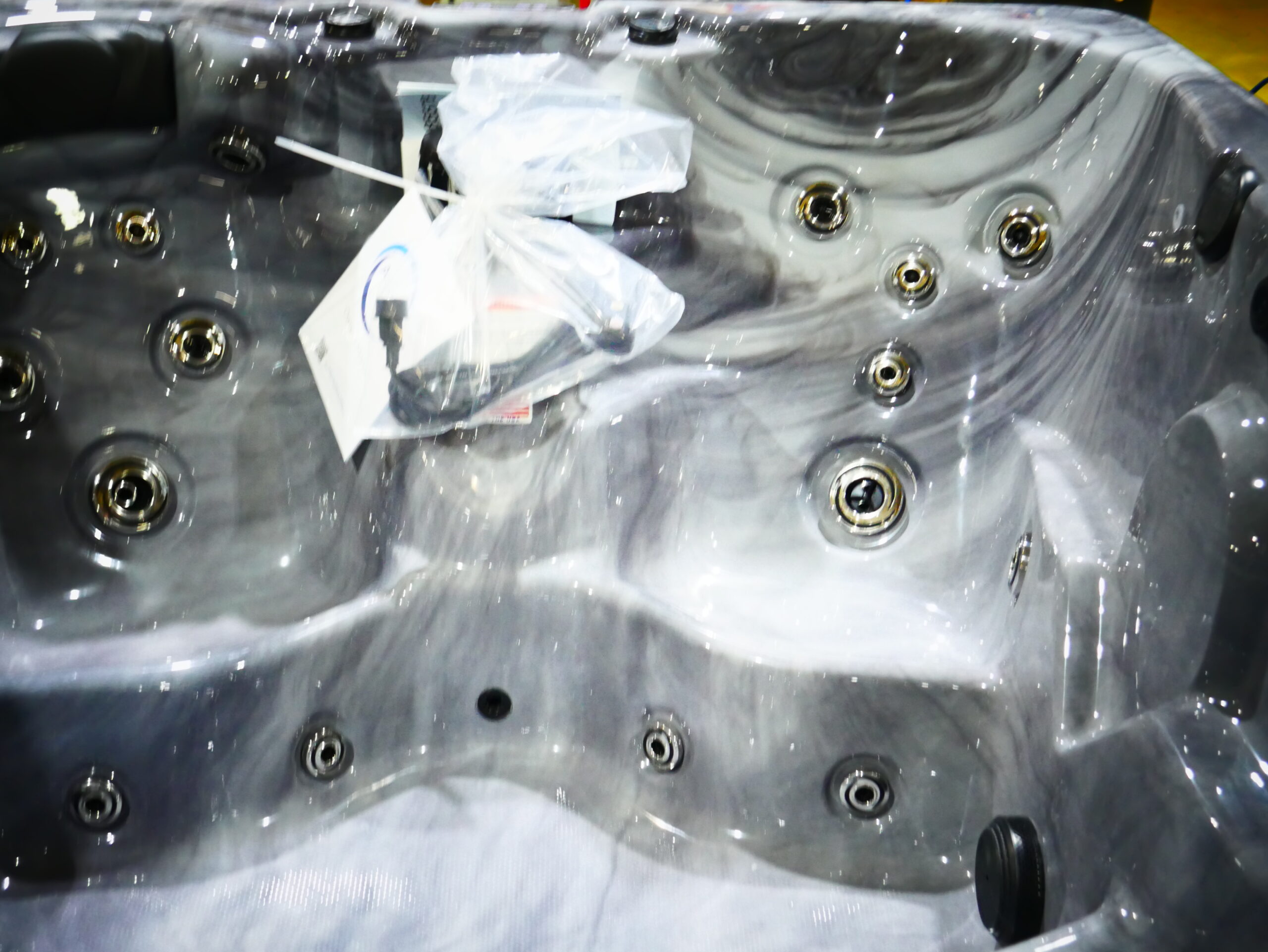 Seats: 5 Jets: 30 Pumps: Dual pumps (1 – 2 hp & 1 – 1hp) Electrical: Dedicated Plug 115V 20 Amp Dimensions: 70” x 80” x 35” Gallons: Min: 230 / Max: 260 Weight: 640 lbs. Comments: this unit has minor acrylic imperfections. SKU: AQL-PP30H-2-1-SCG Serial Number: 238557b