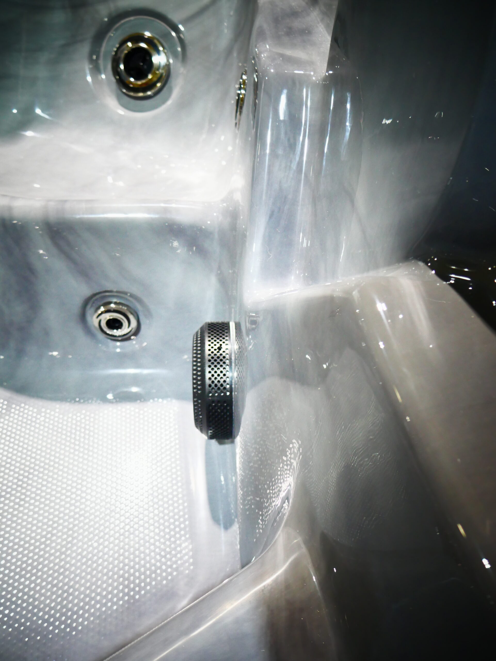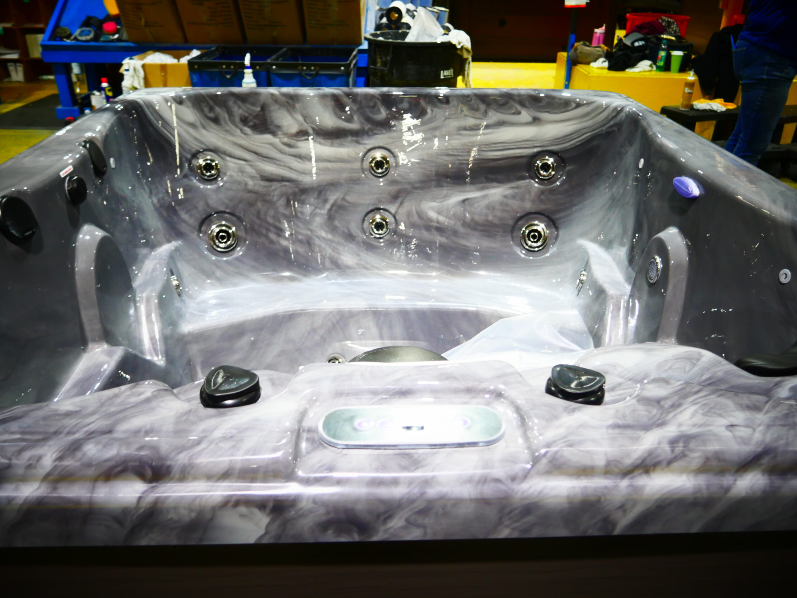 Seats: 5 Jets: 30 Pumps: Dual pumps (1 – 2 hp & 1 – 1hp) Electrical: Dedicated Plug 115V 20 Amp Dimensions: 70” x 80” x 35” Gallons: Min: 230 / Max: 260 Weight: 640 lbs. Comments: this unit has minor acrylic imperfections in the footwell. SKU: AQL-PP30H-2-1-SCG Serial Number: 239634b