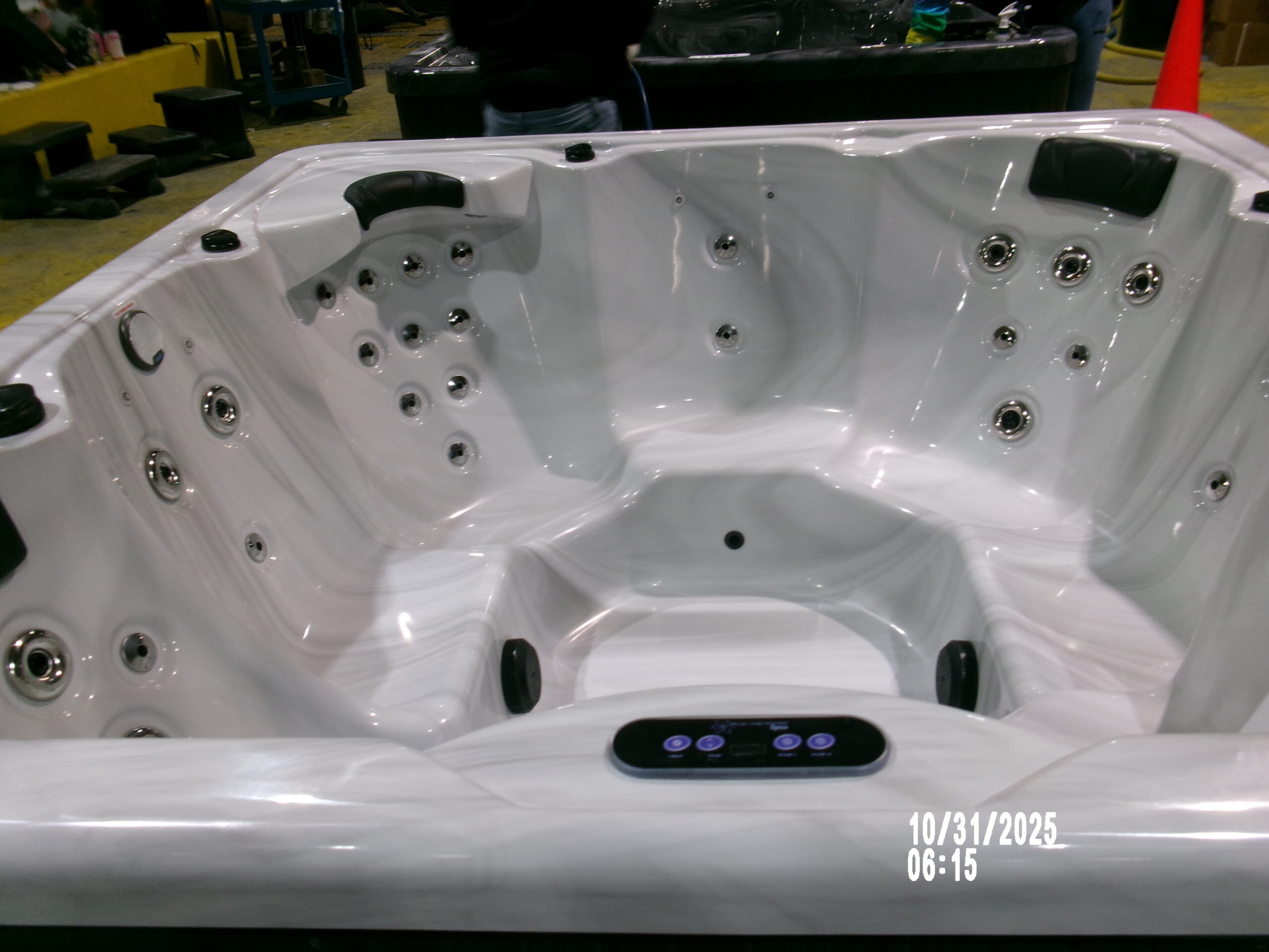 Seats: 6 Jets: 41 Pumps: (1) 2 BHP EE 2-Speed Pump and (1) 1 BHP EE 1-Speed Pump Electrical: Dedicated Plug, 15A GFCI Cord, 110V Dimensions: 82” x 82” x 35” Gallons: Min: 340 / Max: 370 Weight: 780 lbs. Comments: this unit has some minor acrylic imperfections. SKU: AQL-PP41-2-1-GLG Serial Number: 175974rb