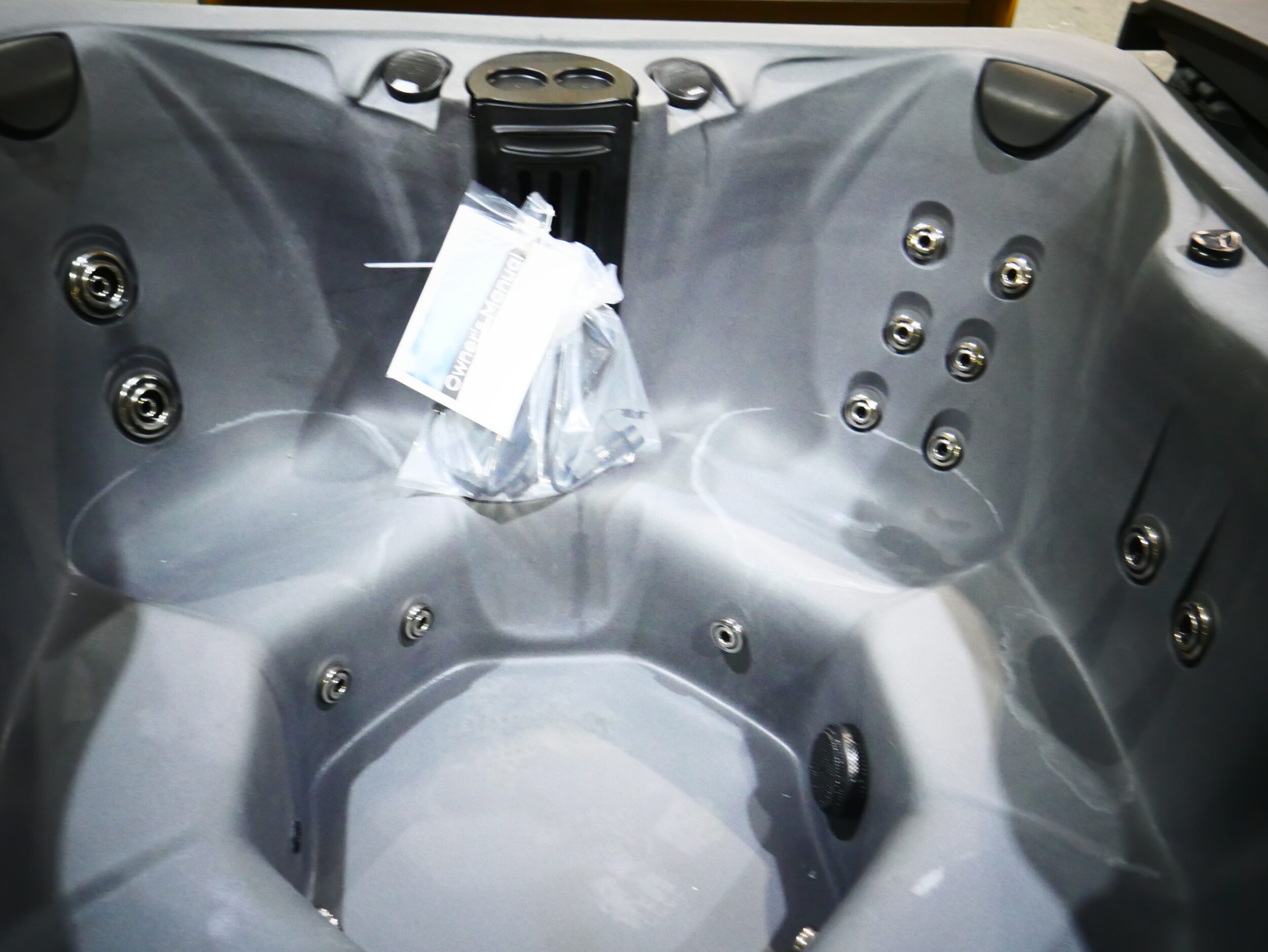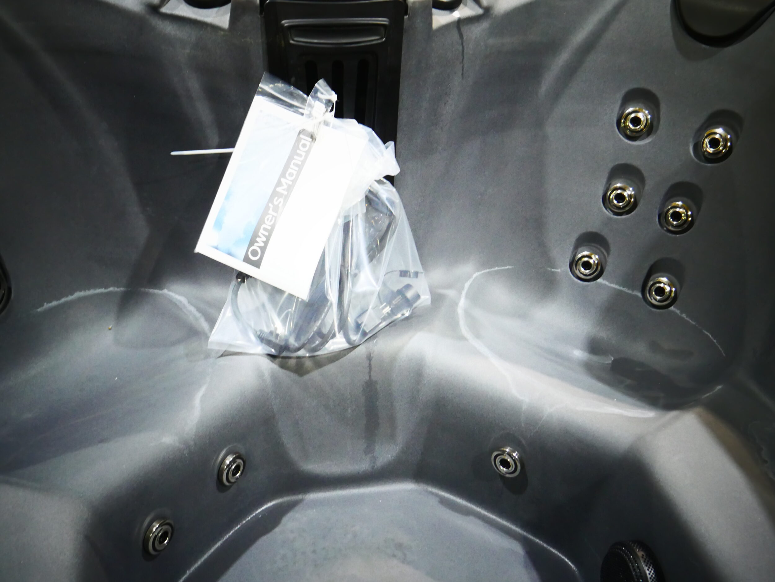 Seats: 7 Jets: 31 Black Jets Pumps: (1) 10A EE Pump 2-Speed & (1) 3A Pump 1-Speed Electrical: Dedicated Plug 110V 20 Amp Dimensions: 77″ x 77″ x 35″ Gallons: 350 Weight: 560 lbs. Comments: Small holes/Multiple scrapes/Surface damages SKU: TTS-450-BT-LS-GGG Serial Number: 229991rb