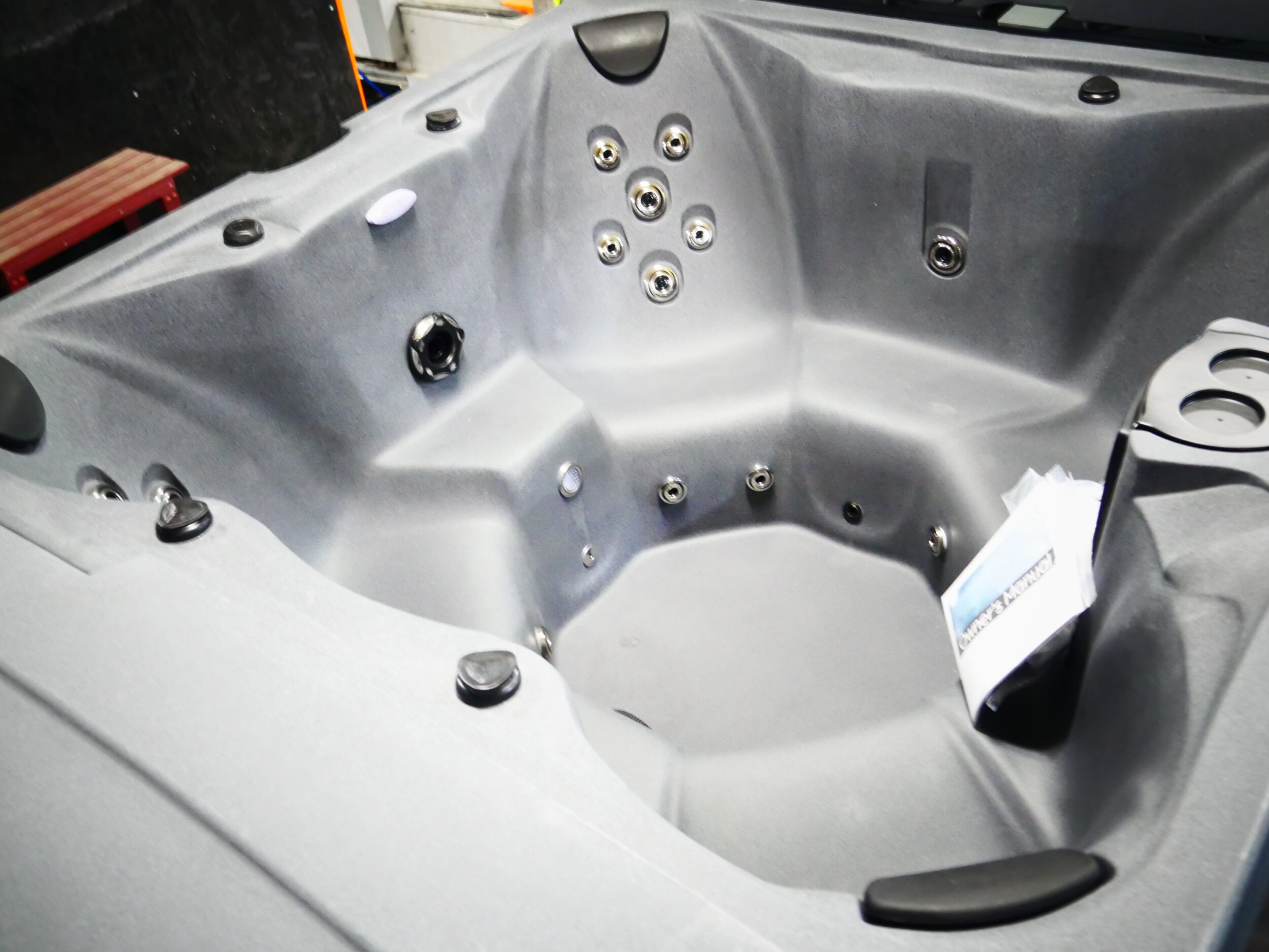 Seats: 7 Jets: 31 Black Jets Pumps: (1) 10A EE Pump 2-Speed & (1) 3A Pump 1-Speed Electrical: Dedicated Plug 110V 20 Amp Dimensions: 77″ x 77″ x 35″ Gallons: 350 Weight: 560 lbs. Comments: Repair in Footwell SKU: CTS-450-GGG Serial Number: 243382b