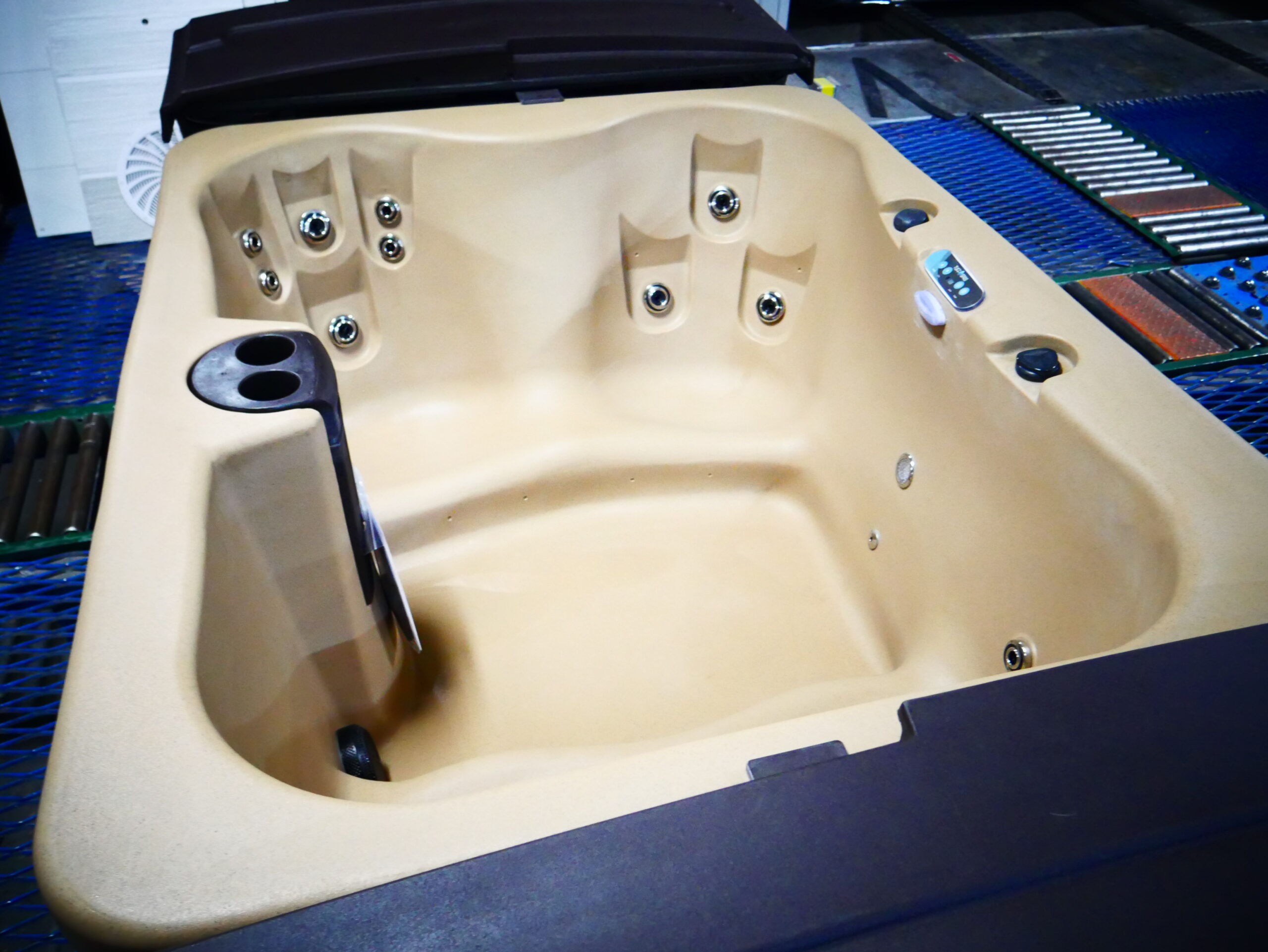 This roto-molded tub offers all the benefits of an acrylic spa, in a durable single frame construction. Designed for 4 people. This unit is made in our Sahara/Mocha two tone color.